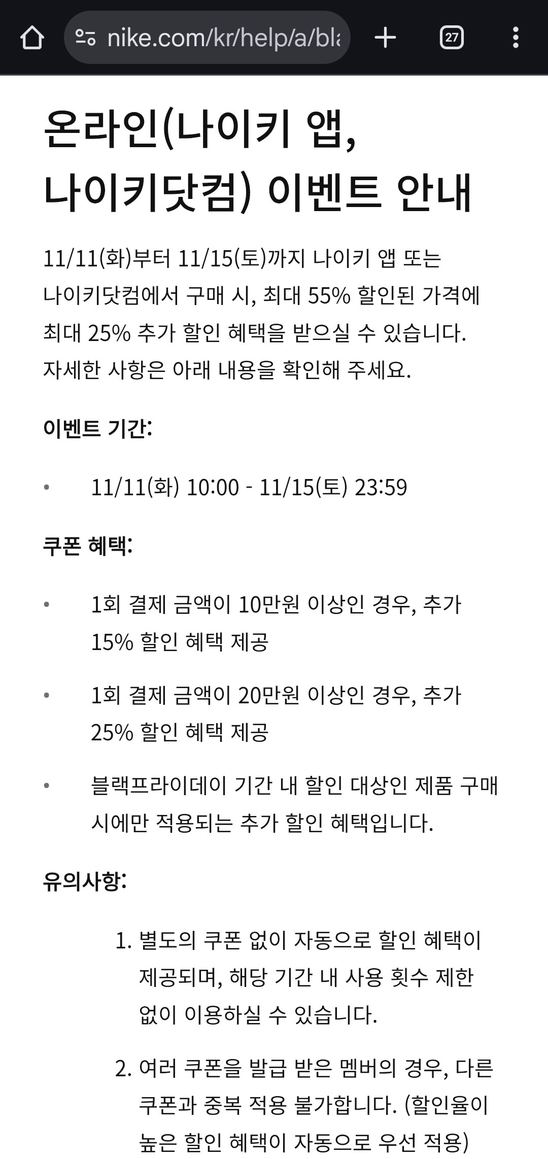 #나이키 #나이키세일 #블랙프라이데이 #나이키블랙프라이데이 #나이키할인 #나이키추가할인 #나이키앱 #운동화할인 #나이키코디 #나이키의류 #나이키운동화