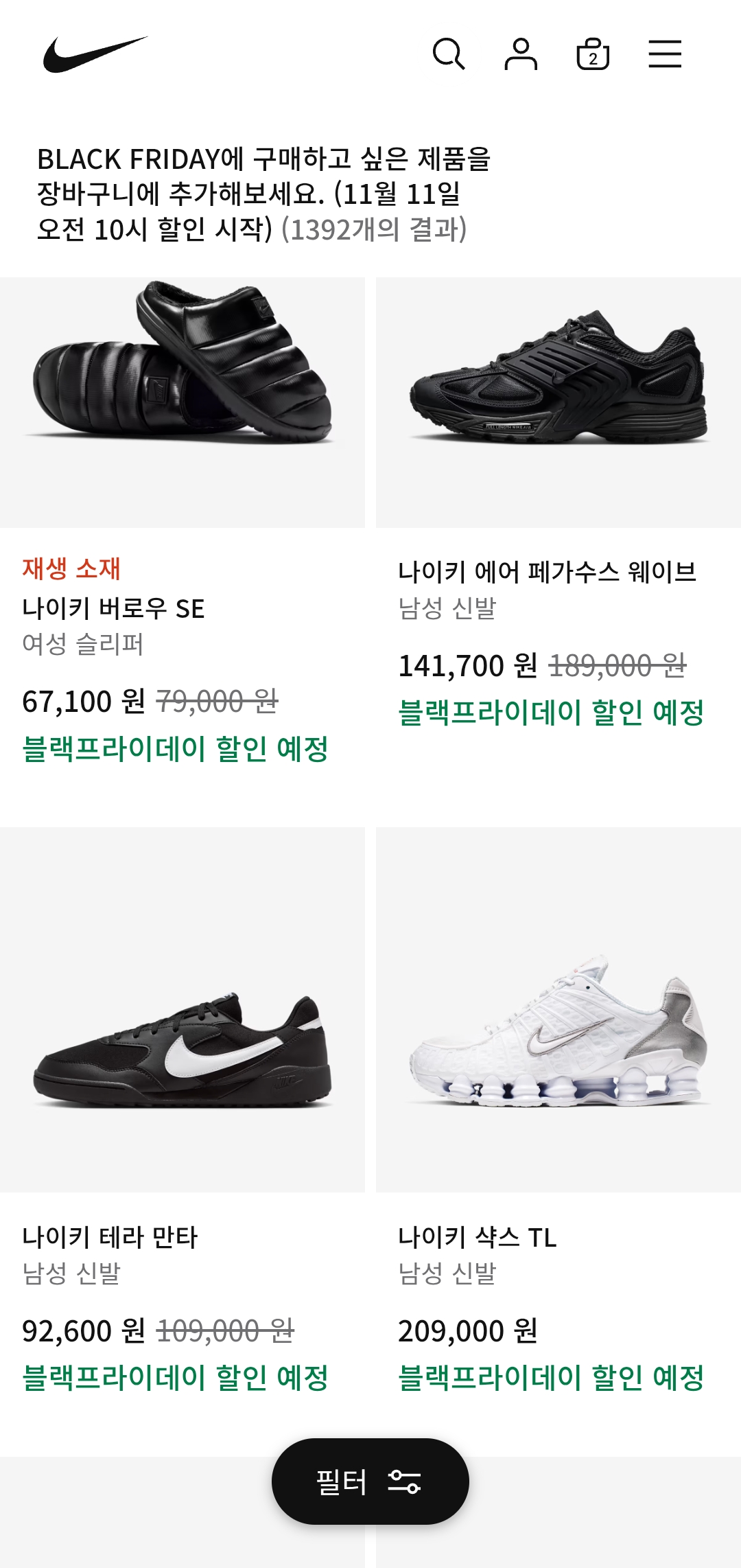 기본 세일 최대 55% OFF 나이키 블랙프라이데이 세일 상품