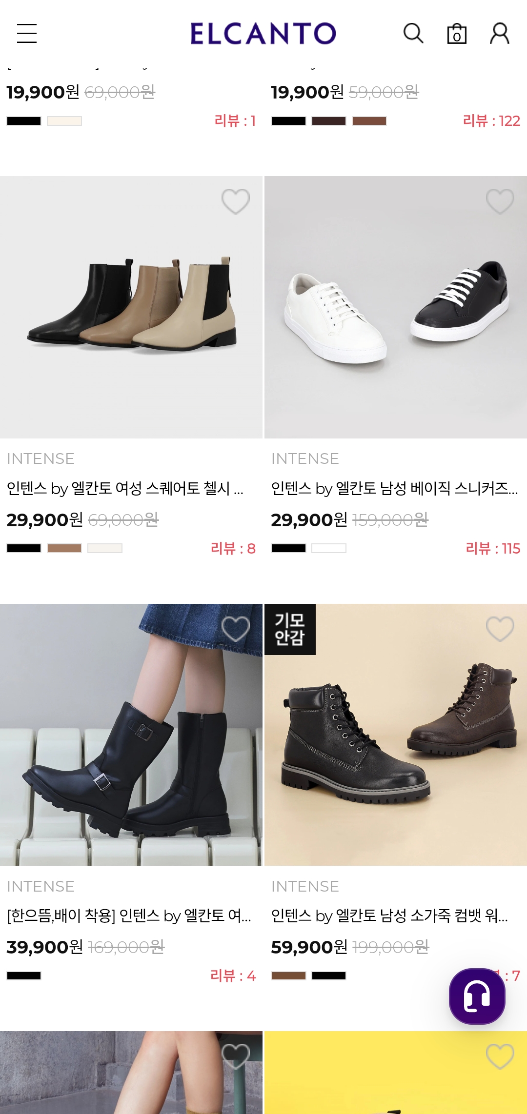 엘칸토는 다양한 라인(예: 인텐스, 마쯔)을 통해 운동화부터 정장화까지 폭넓은 스타일을 제공해 왔고, 실제 상품 페이지에서도 할인률 70% 이상 제품들이 보입니다.