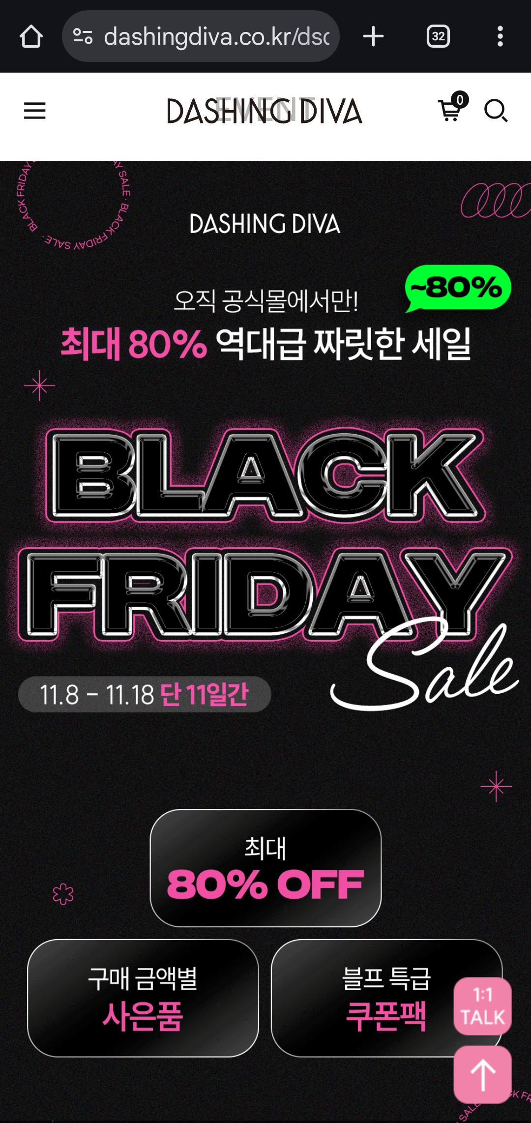 뷰티풀 라이프 데싱디바에서 최대 80% 할인하는 블랙프라이데이 역대급 이벤트가 시작되었습니다.
