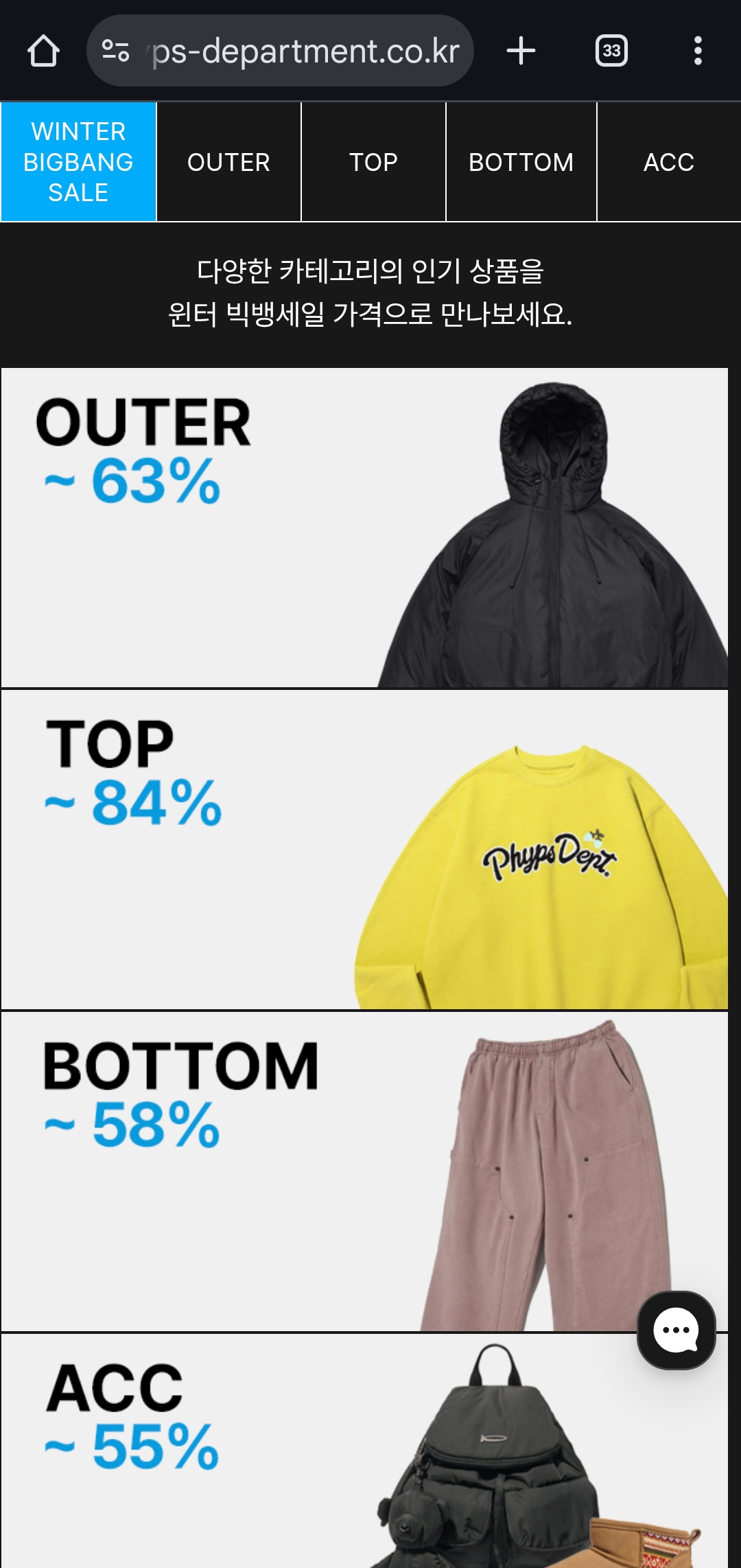 행사명: PHYDEPT WINTER BIG BANG SALE