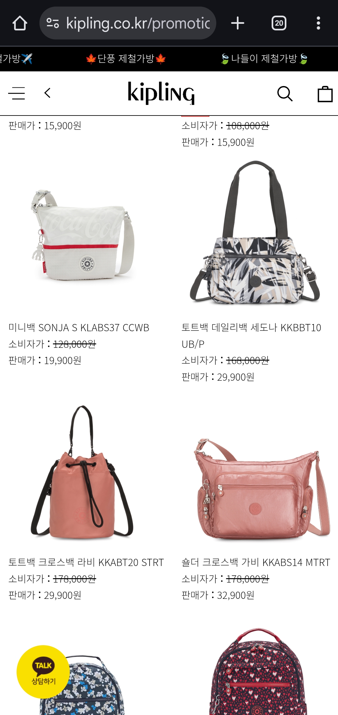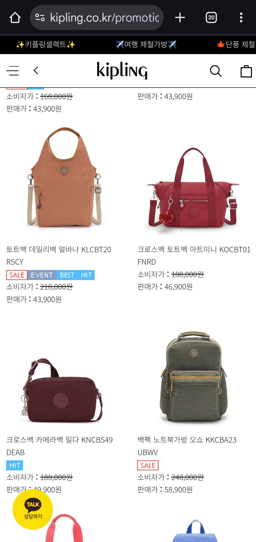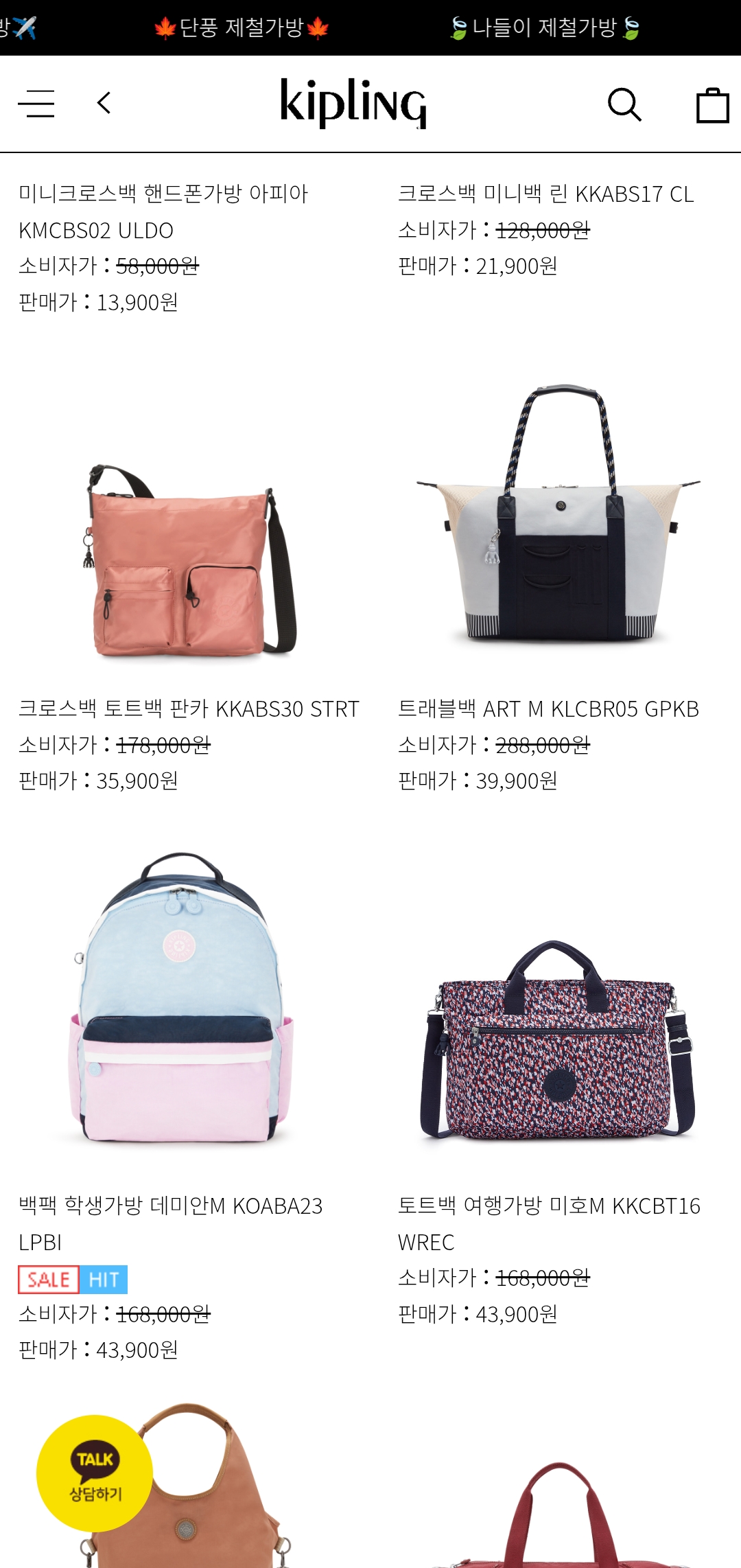 평소 키플링이 비싸서 망설였던 분들도 이번에는 부담 없이 장바구니 담을 수 있는 절호의 기회!
