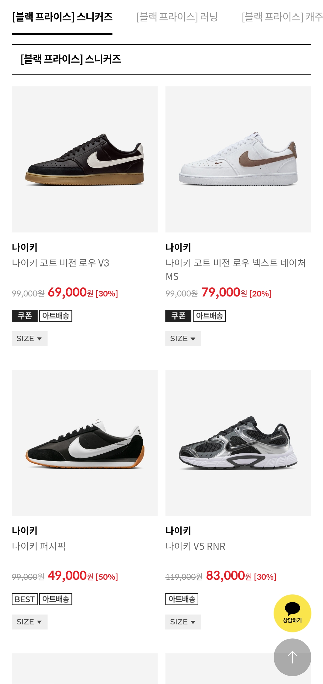 특히 ‘나이키 코트 비전’, ‘퍼시픽’, ‘에어맥스’ 등 스테디셀러 라인이 대거 참여해 가격 경쟁력이 매우 높아요.