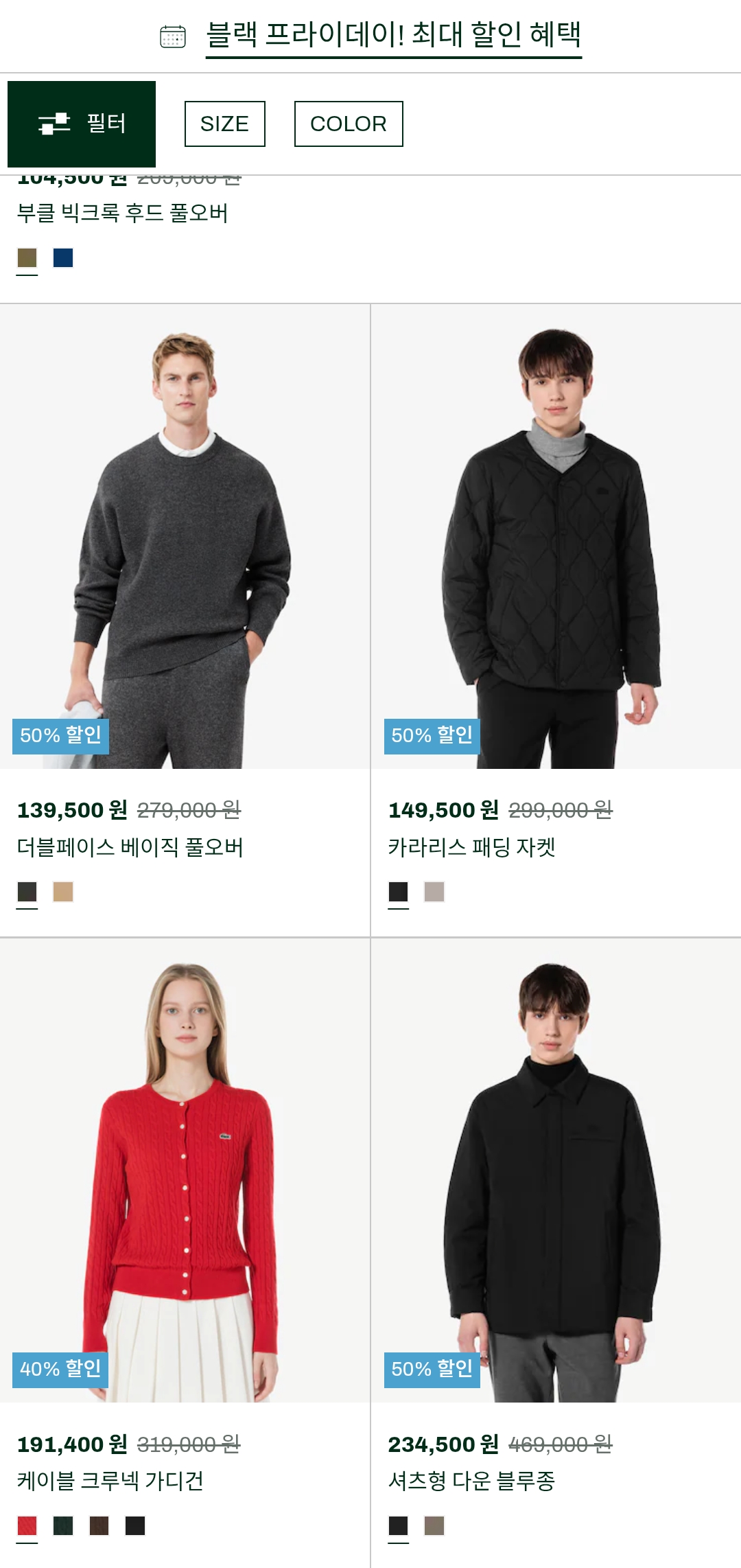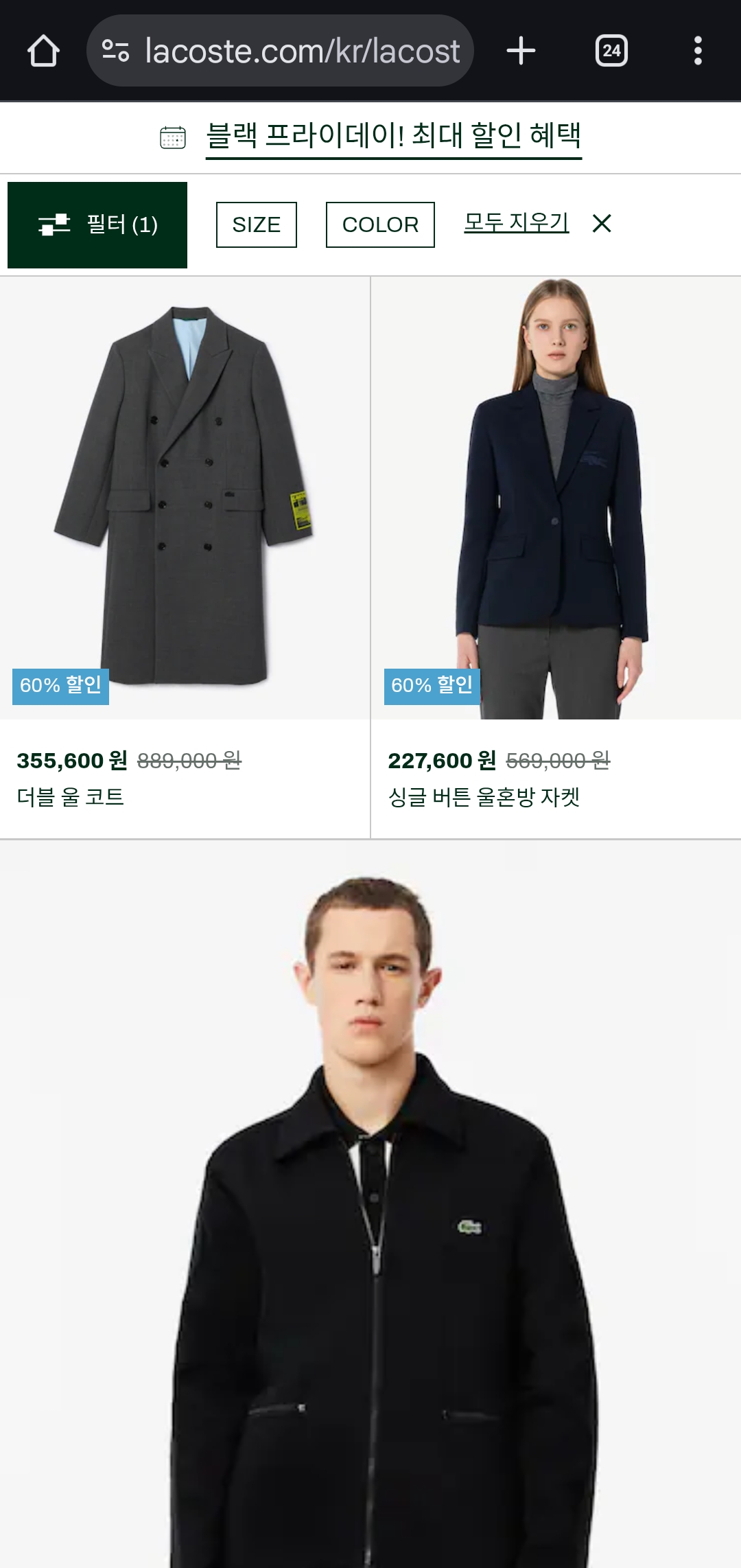 프렌치 스포츠 캐주얼의 상징, **라코스테(Lacoste)**가 블랙프라이데이를 맞아 공식몰에서 최대 60% 할인하는 대형 세일을 진행 중입니다.