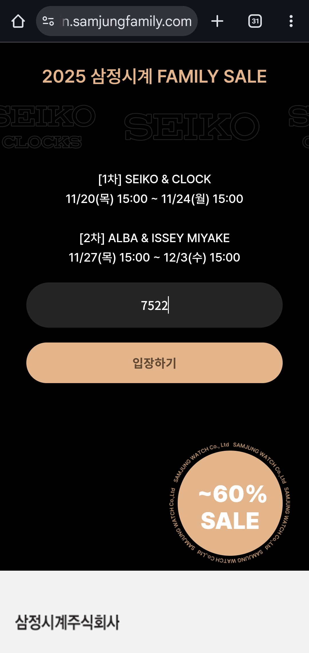 행사명: 2025 삼정시계 FAMILY SALE