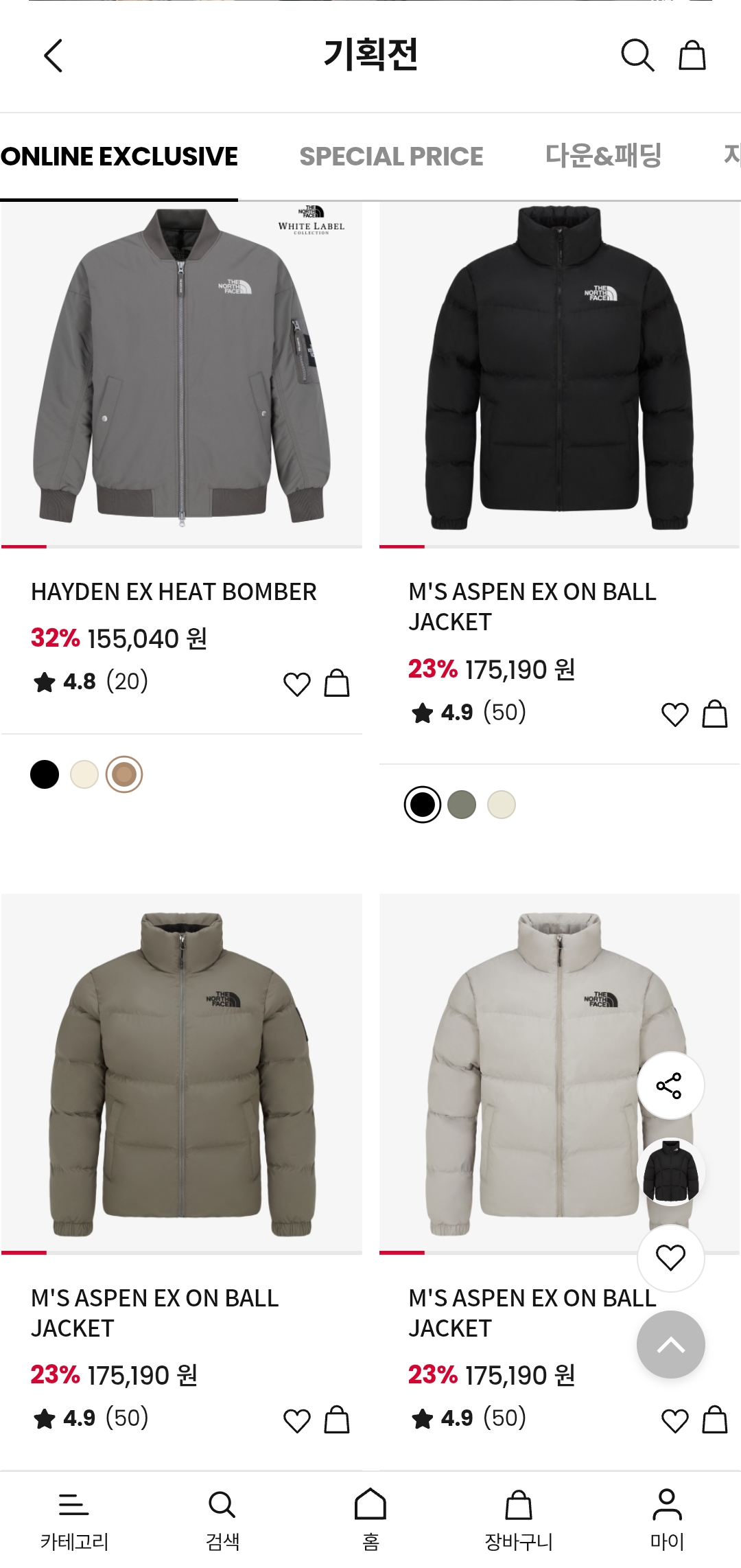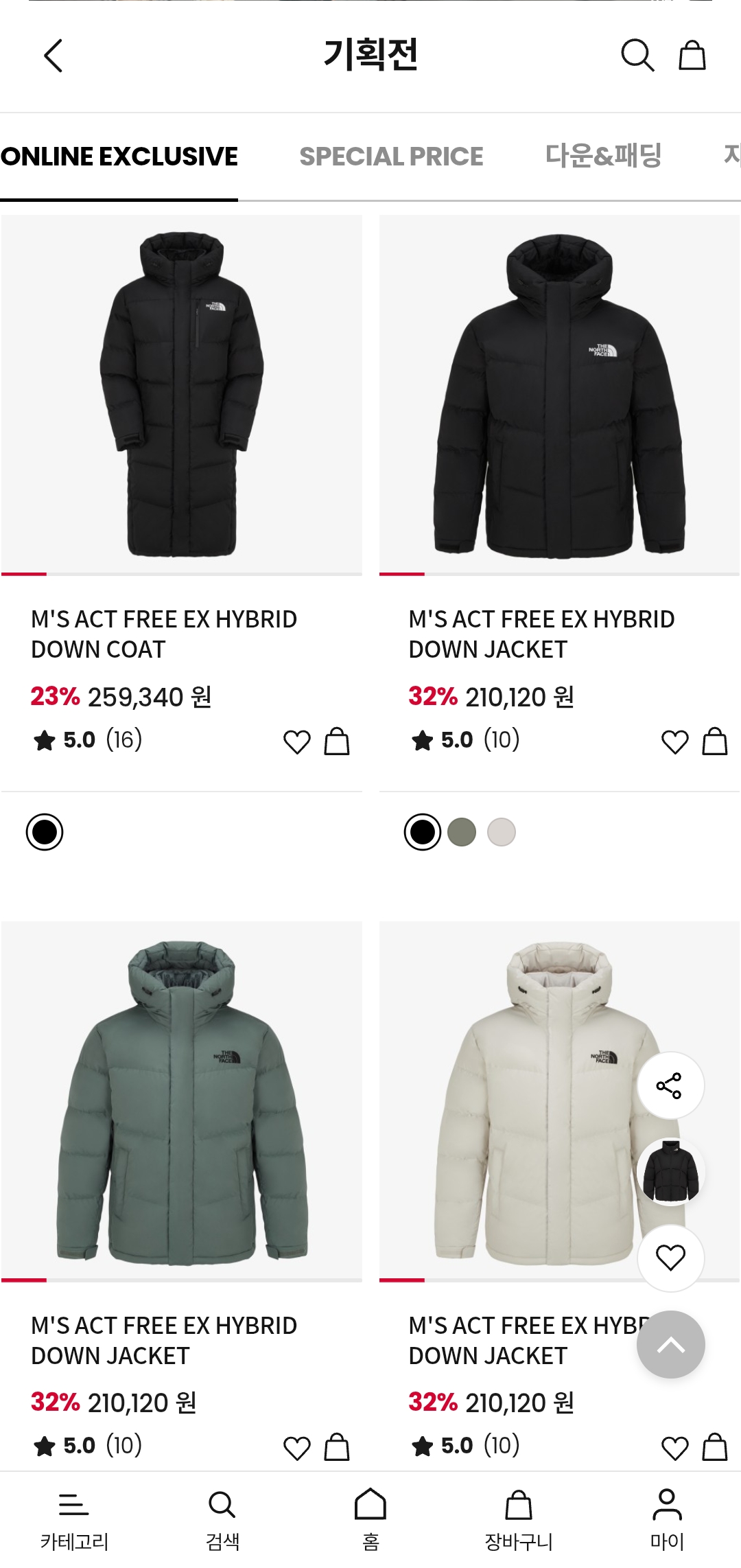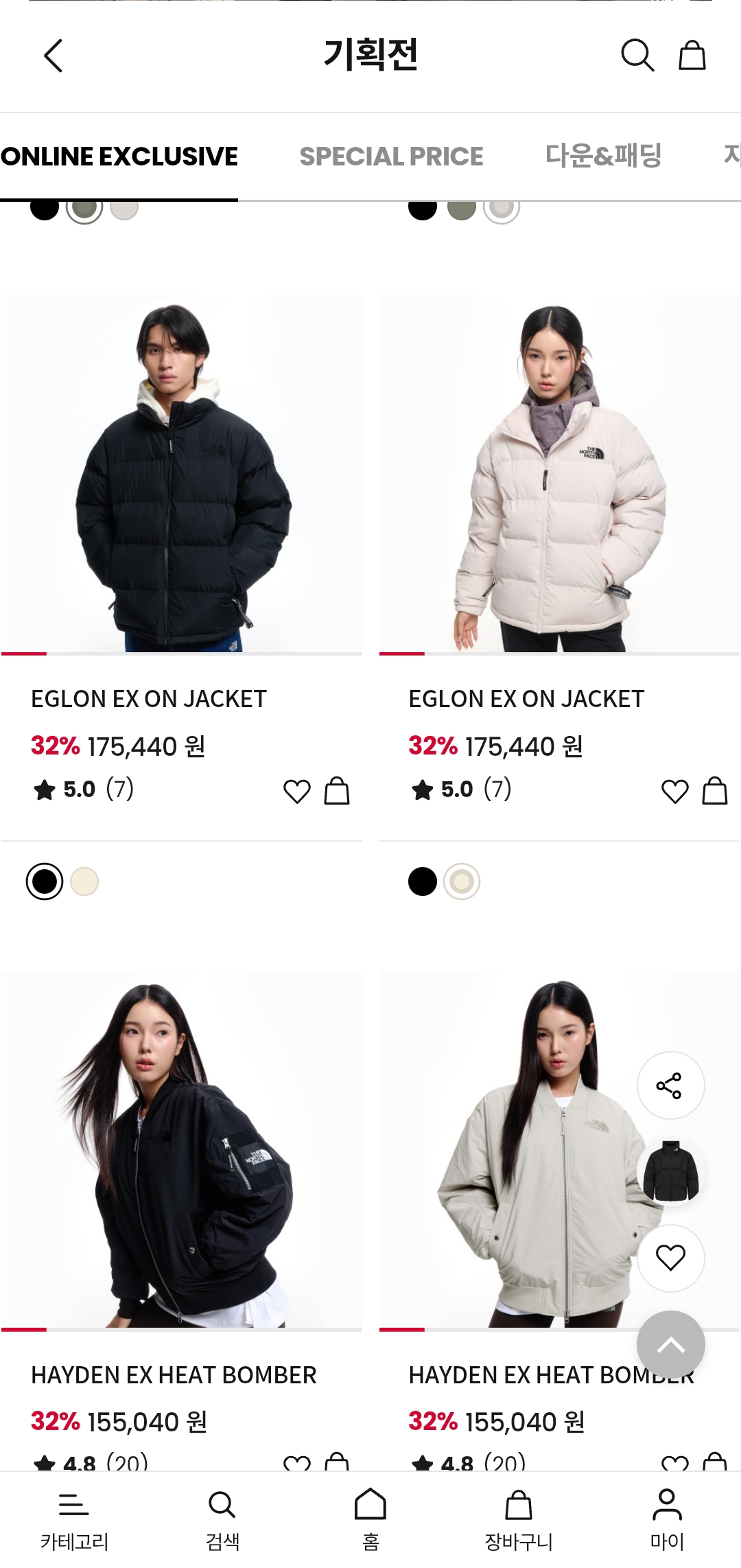대상 제품: 다운 코트, 하이브리드 다운, 히트 보머, 익스온 재킷 등 인기 아우터 중심