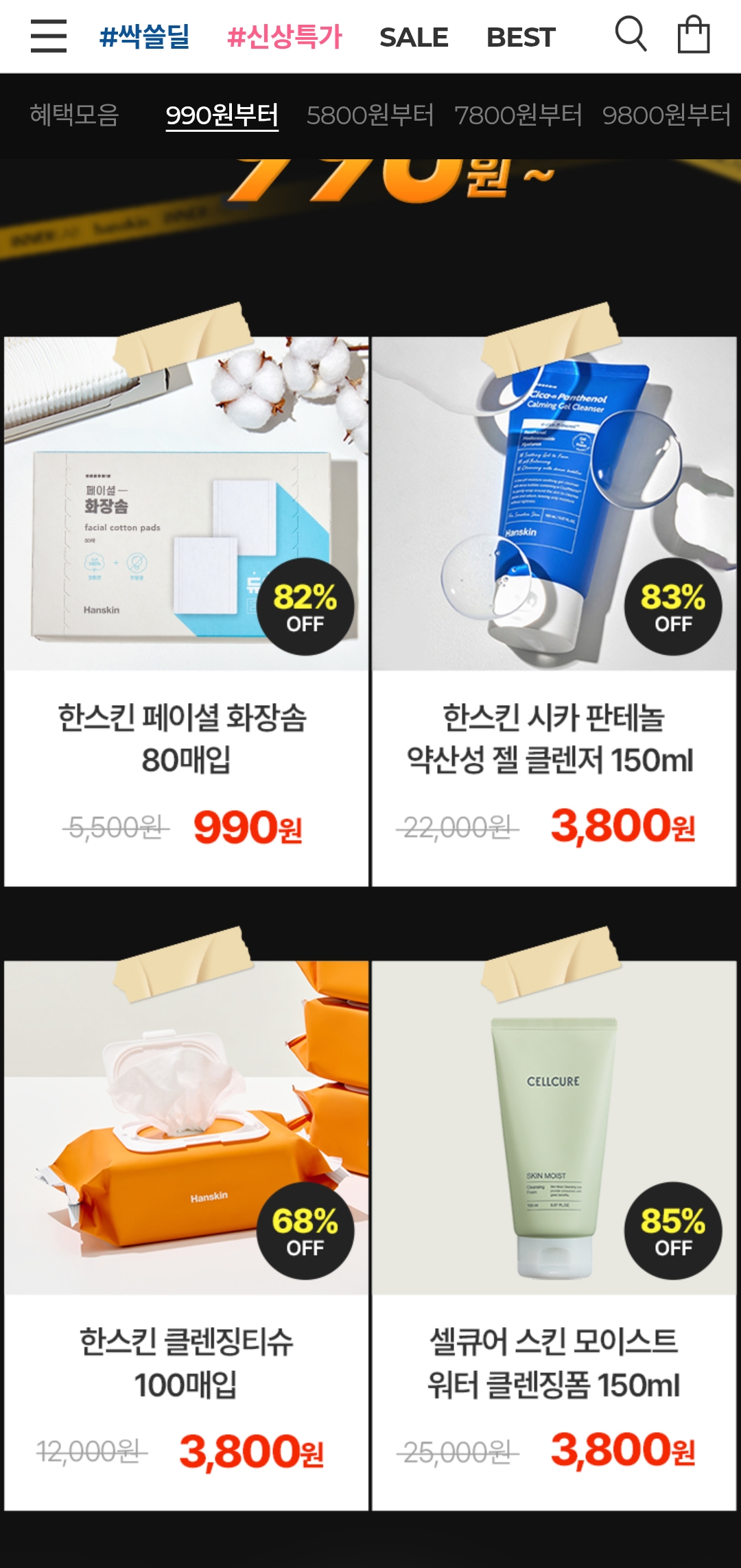 한스킨·셀트리온스킨큐어·건강기능식품 등 인기 제품들이 대량 포함되어, 평소 장바구니에 담아둔 제품을 득템하기 딱 좋은 시기입니다.