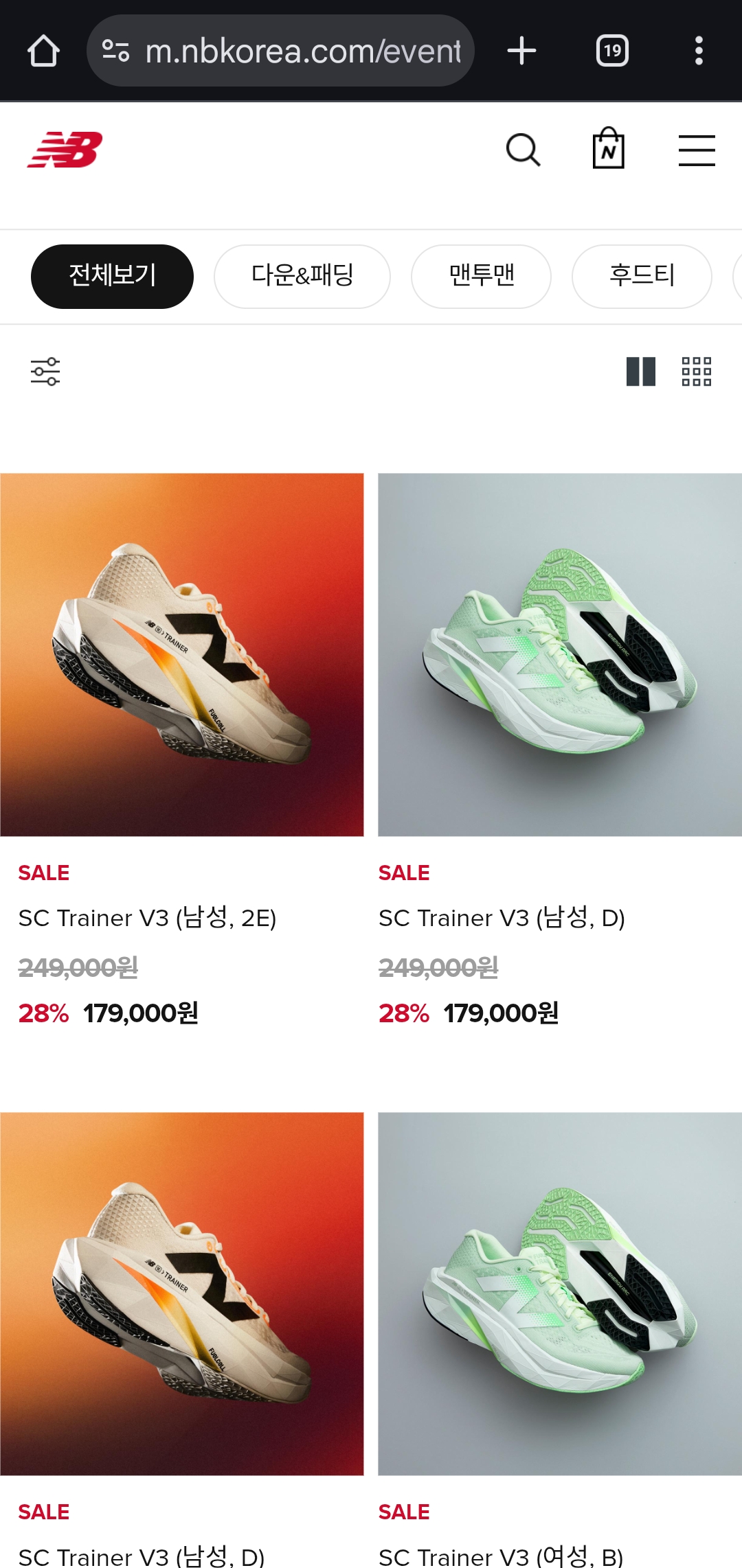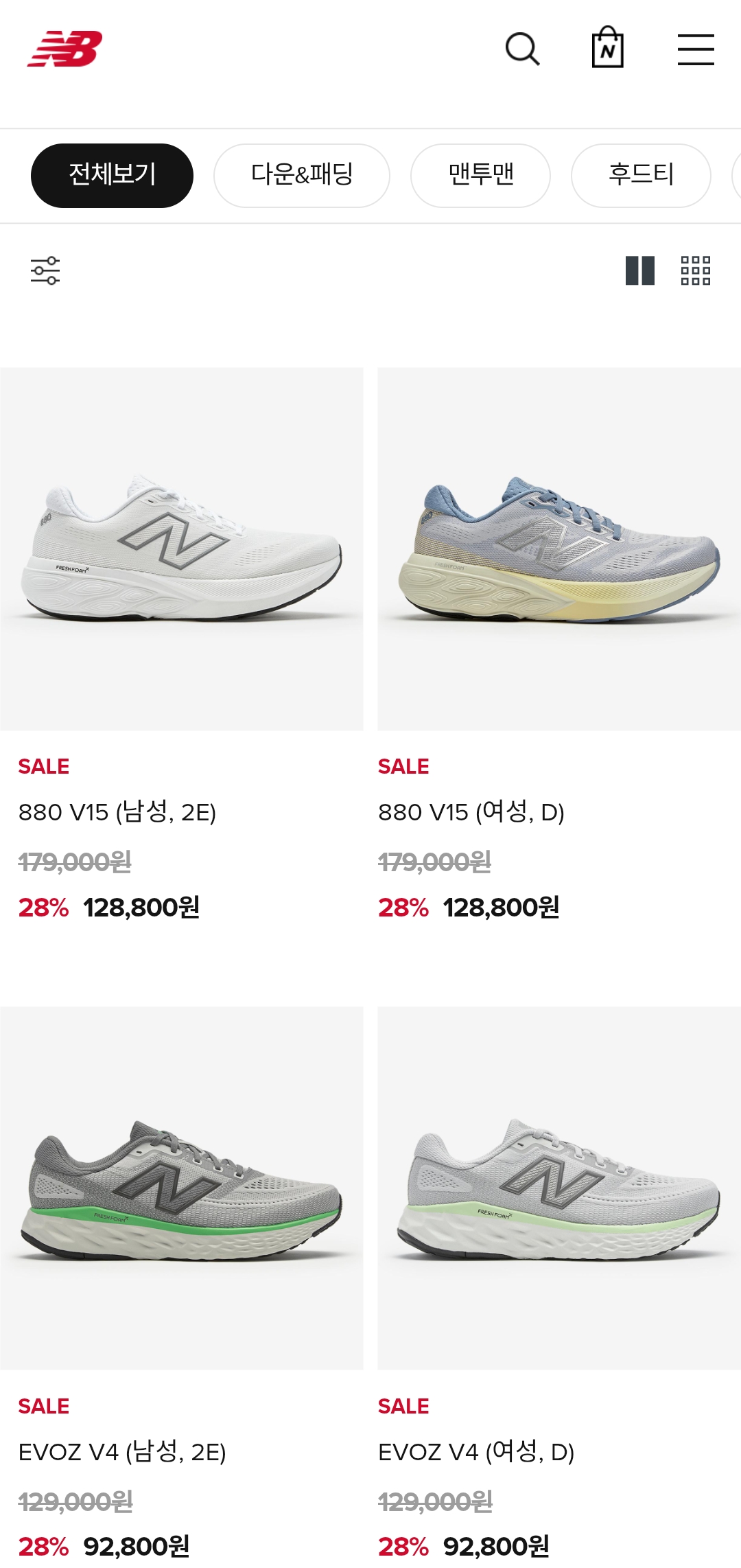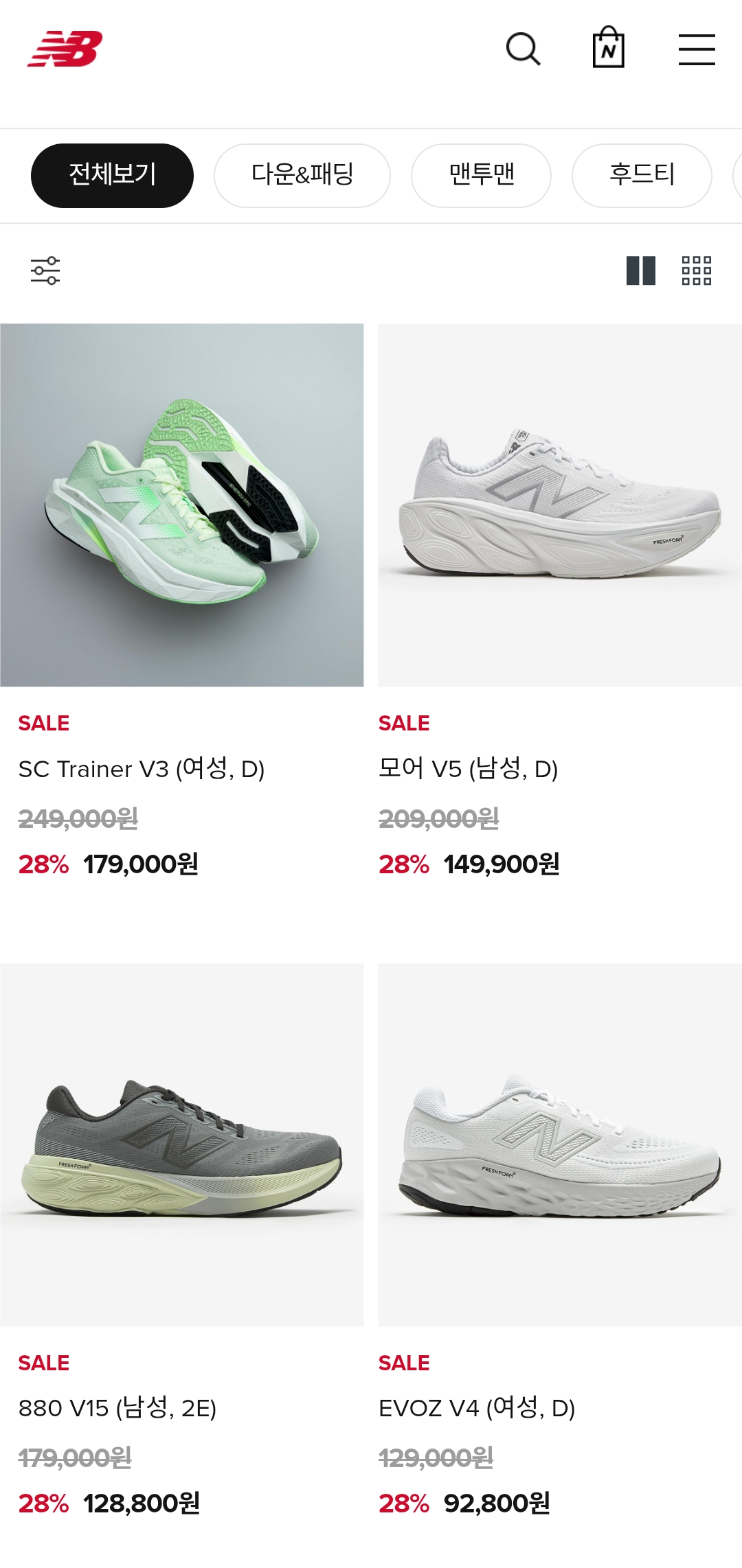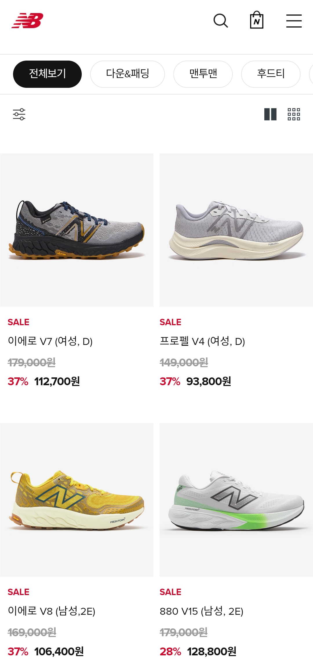 카테고리: 아우터, 패딩, 트레이닝, 러닝화, 라이프스타일 스니커즈, 어린이 제품 등