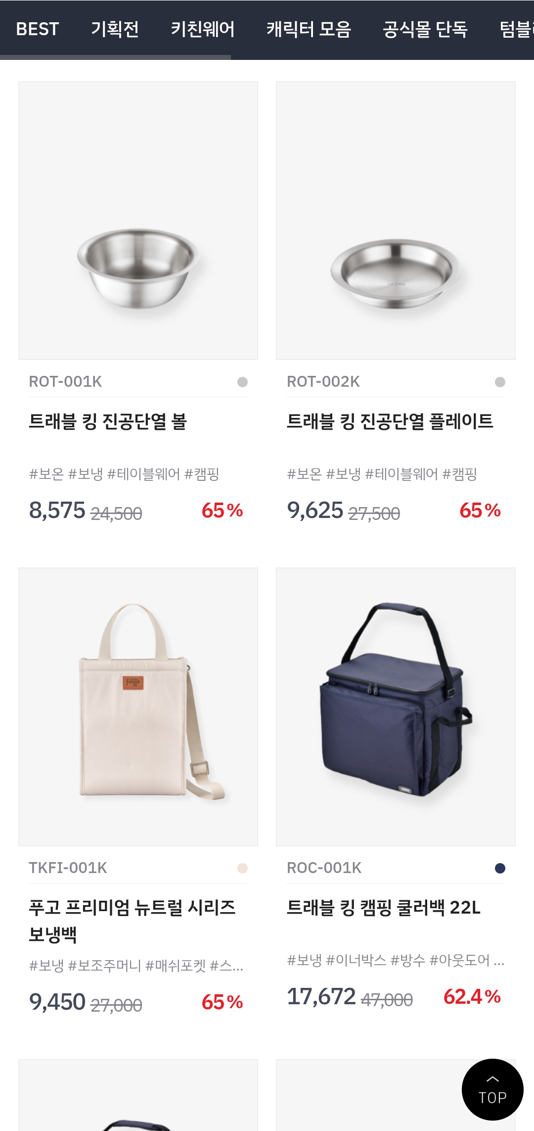 텀블러, 보온병, 도시락통, 푸드자까지 전 카테고리 품목이 대거 포함되어 있어 선물용·자기용 모두 챙기기 좋은 행사예요.