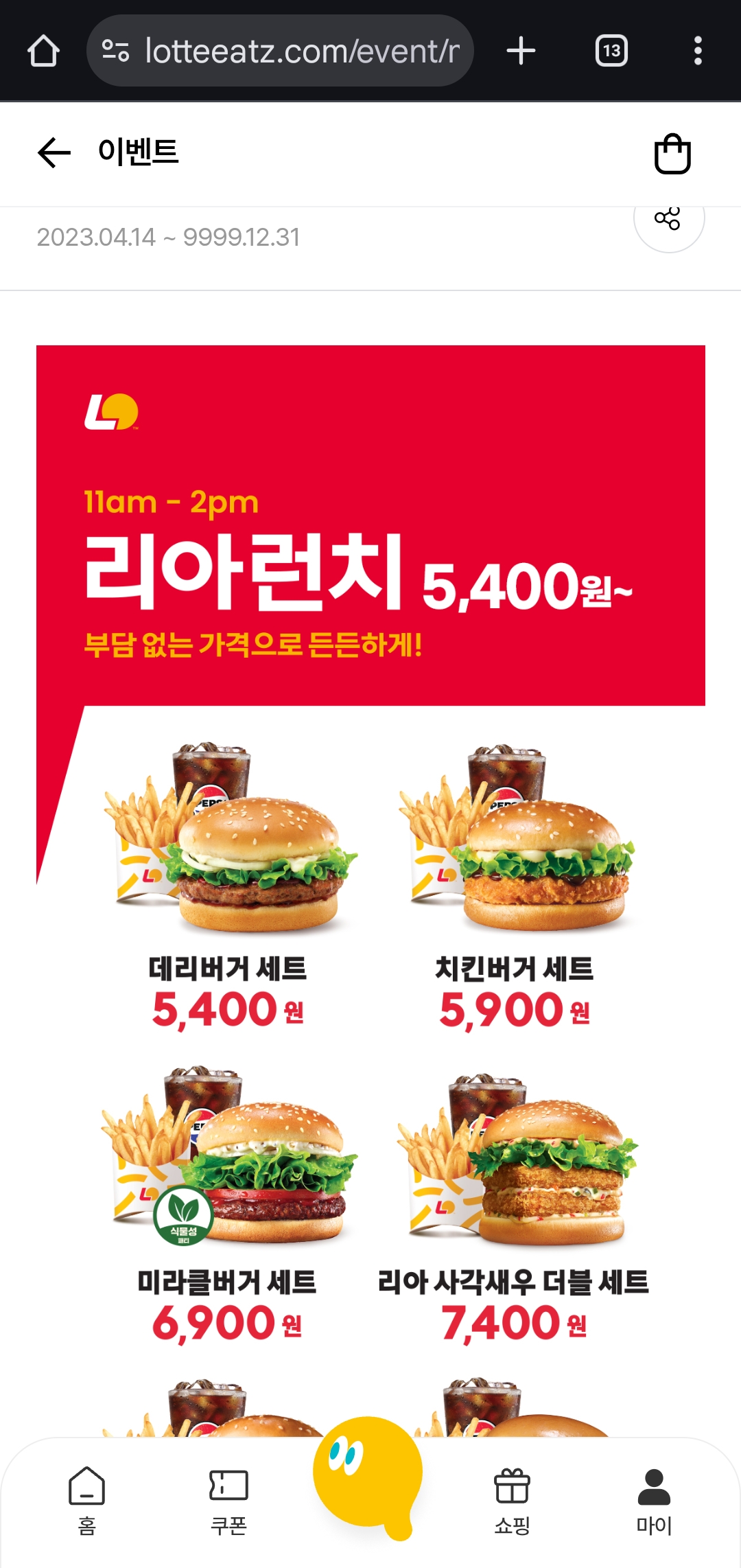 롯데리아 리아런치, 롯데리아 점심 할인, 롯데리아 런치세트, 데리버거 런치, 롯데리아 할인 이벤트, 버거 세트 할인, 점심추천, 패스트푸드 할인, 롯데리아 프로모션