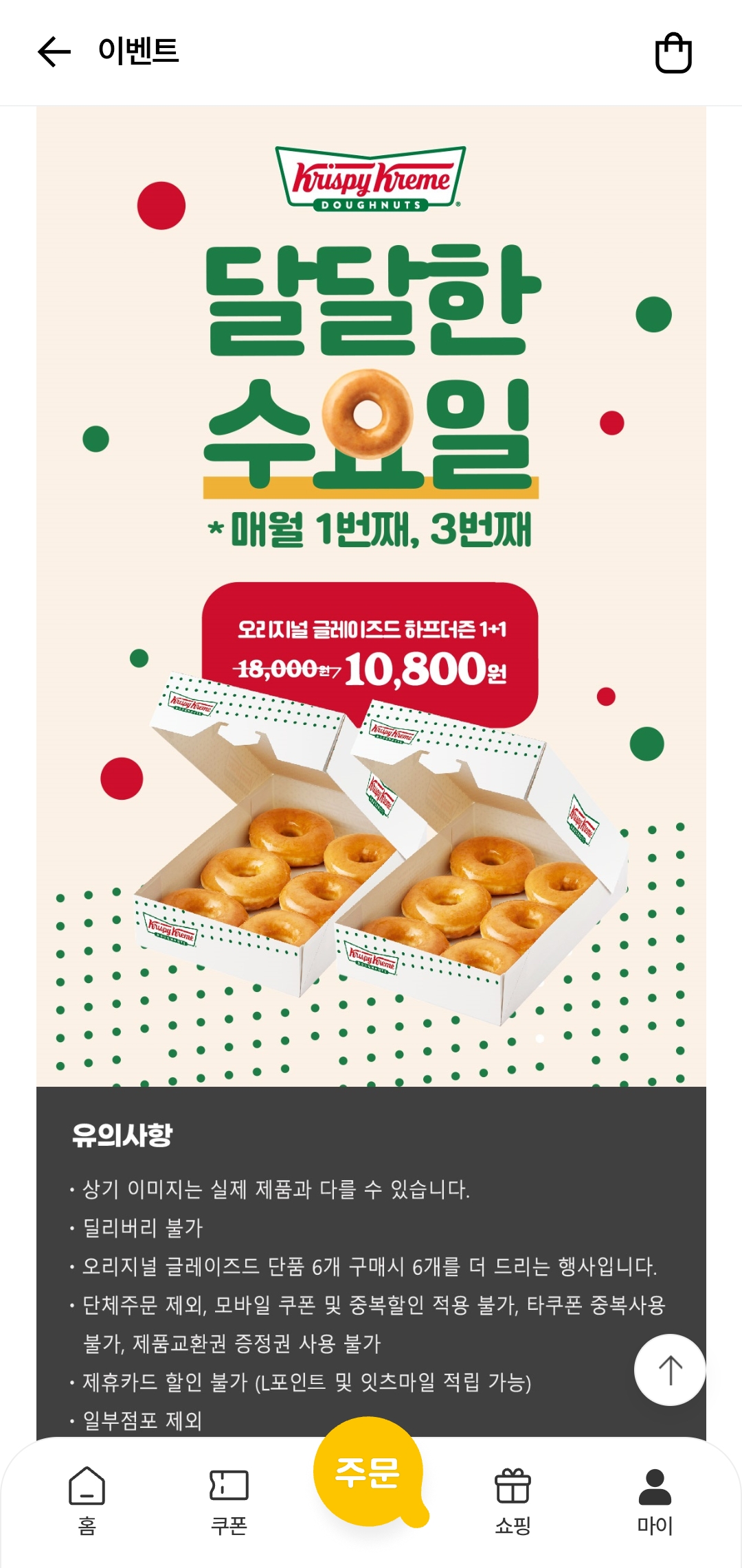 이벤트명: 달달한 수요일 – 오리지널 글레이즈드 하프더즌 1+1