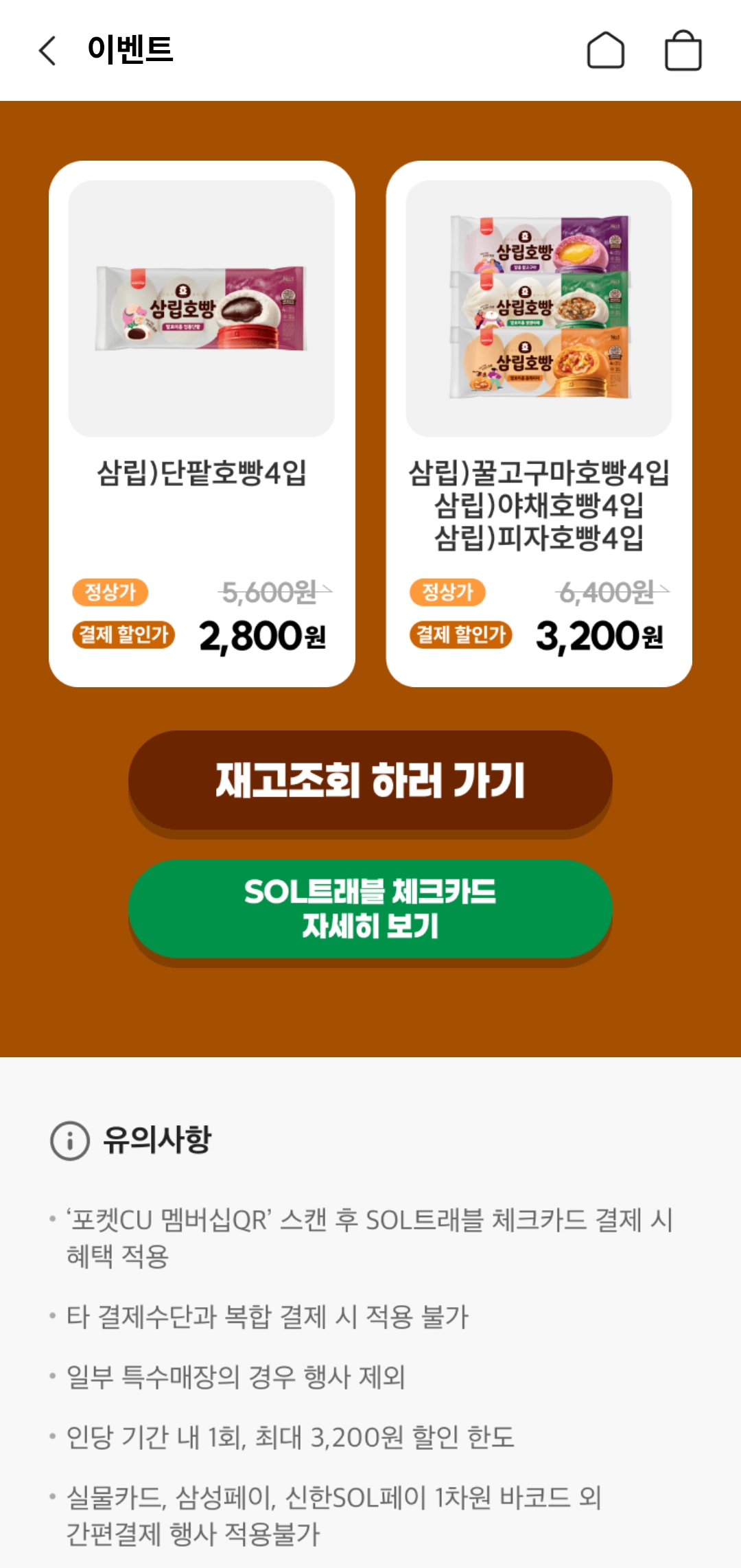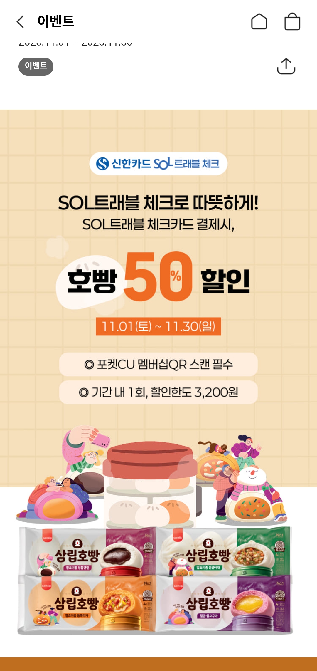 CU호빵할인, CU50%할인, CU겨울간식, SOL트래블체크카드, 신한체크카드혜택, CU이벤트, 삼립호빵, 편의점호빵할인