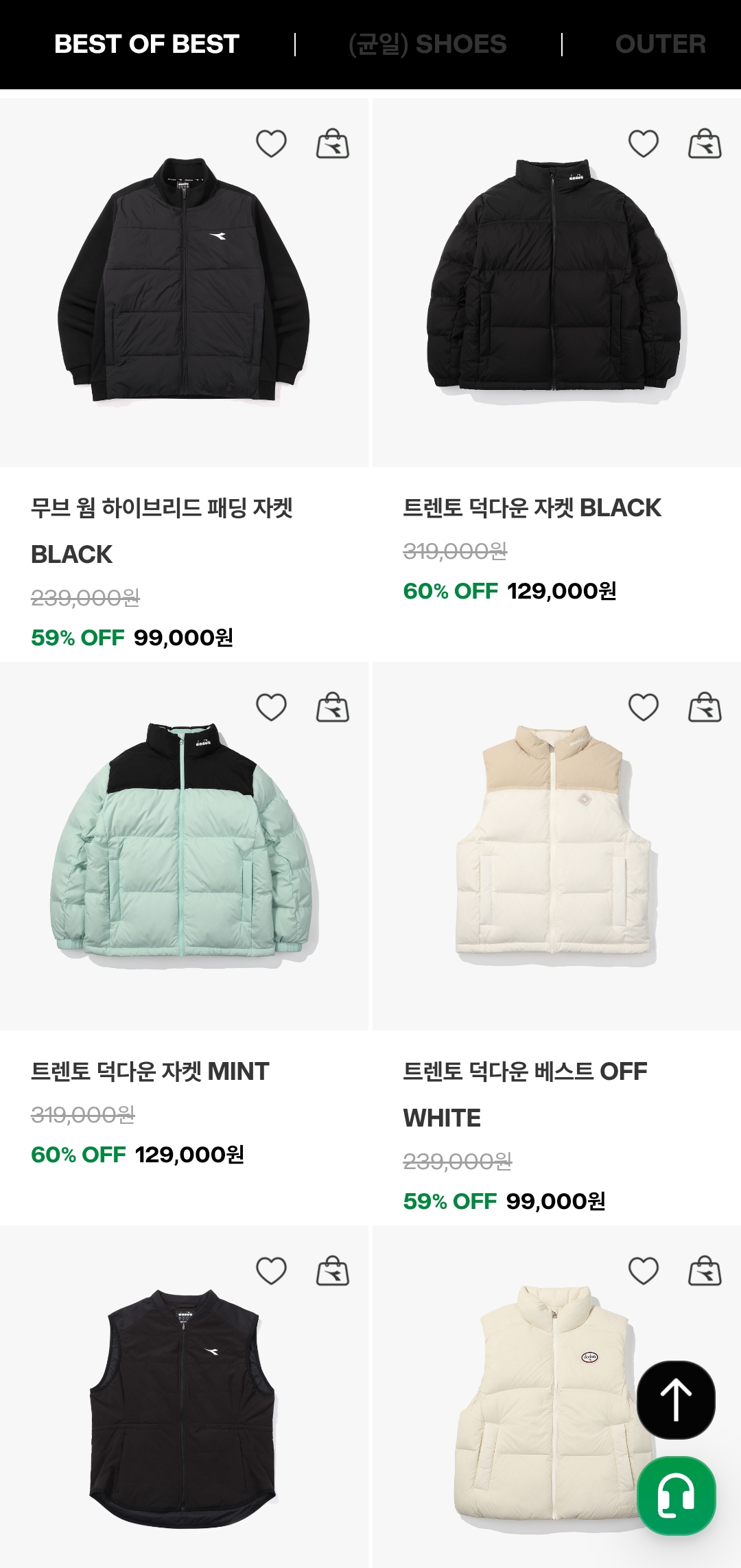 트렌토 덕다운 베스트 OFF WHITE | 239,000원 | 59%↓ | 99,000원