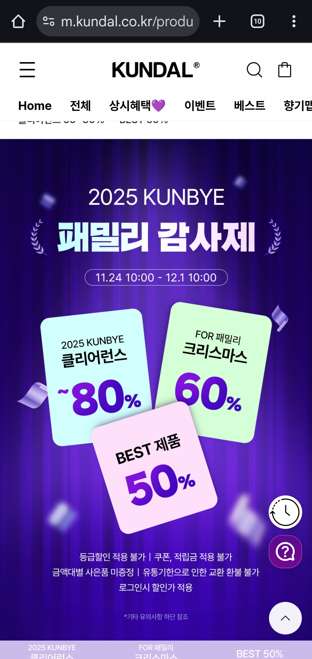 📌 링크 : 쿤달 공식몰 패밀리세일