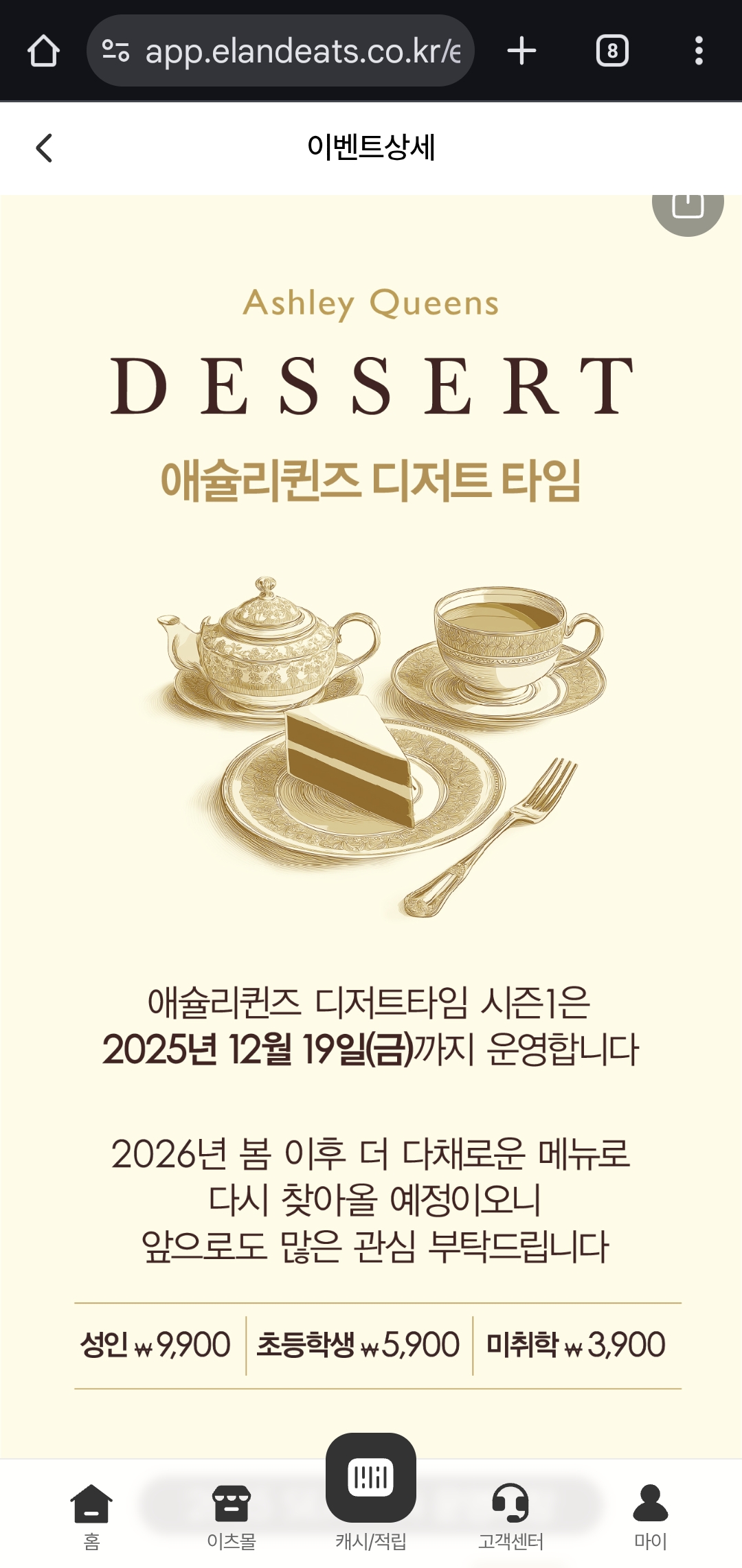 행사명: 애슐리퀸즈 디저트 타임 시즌1