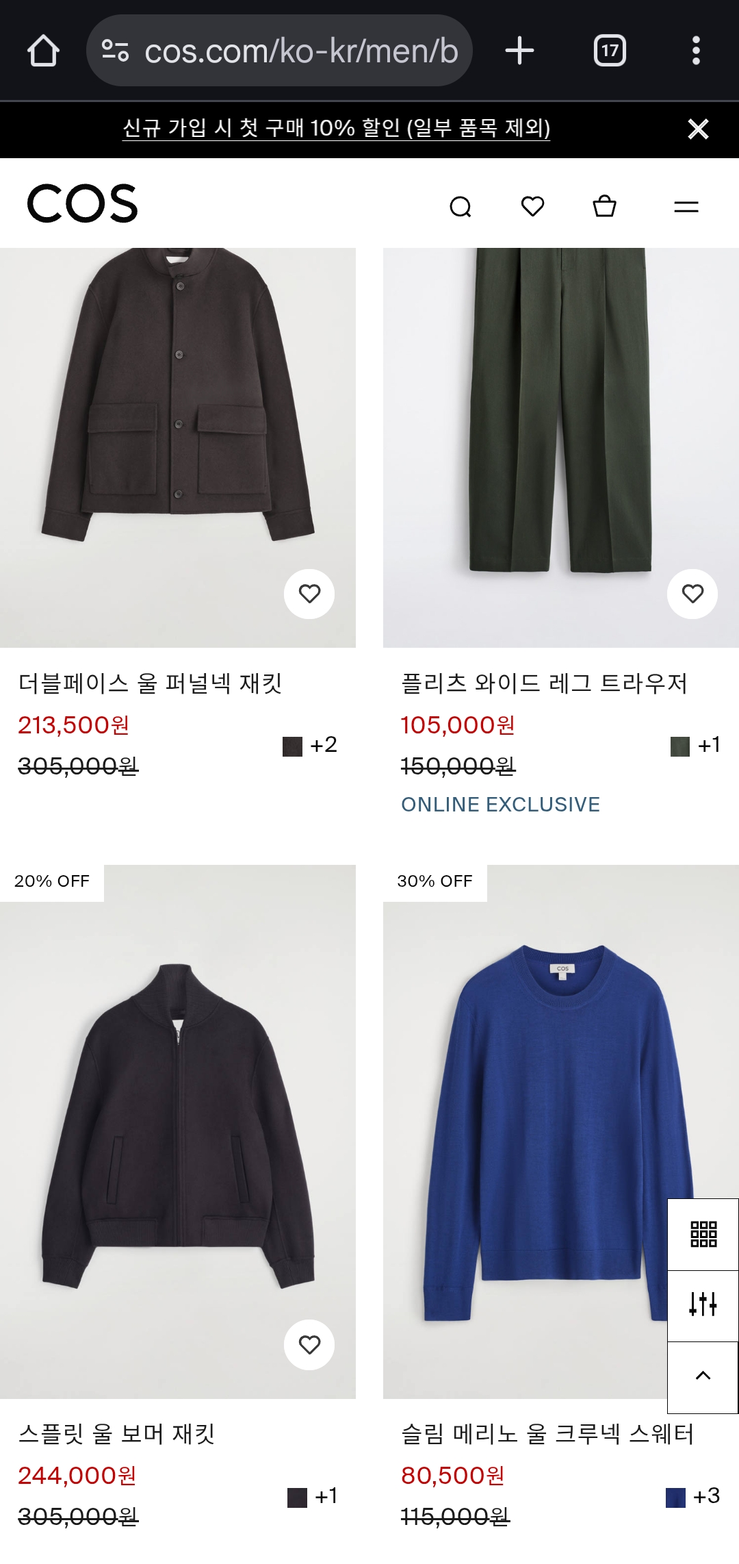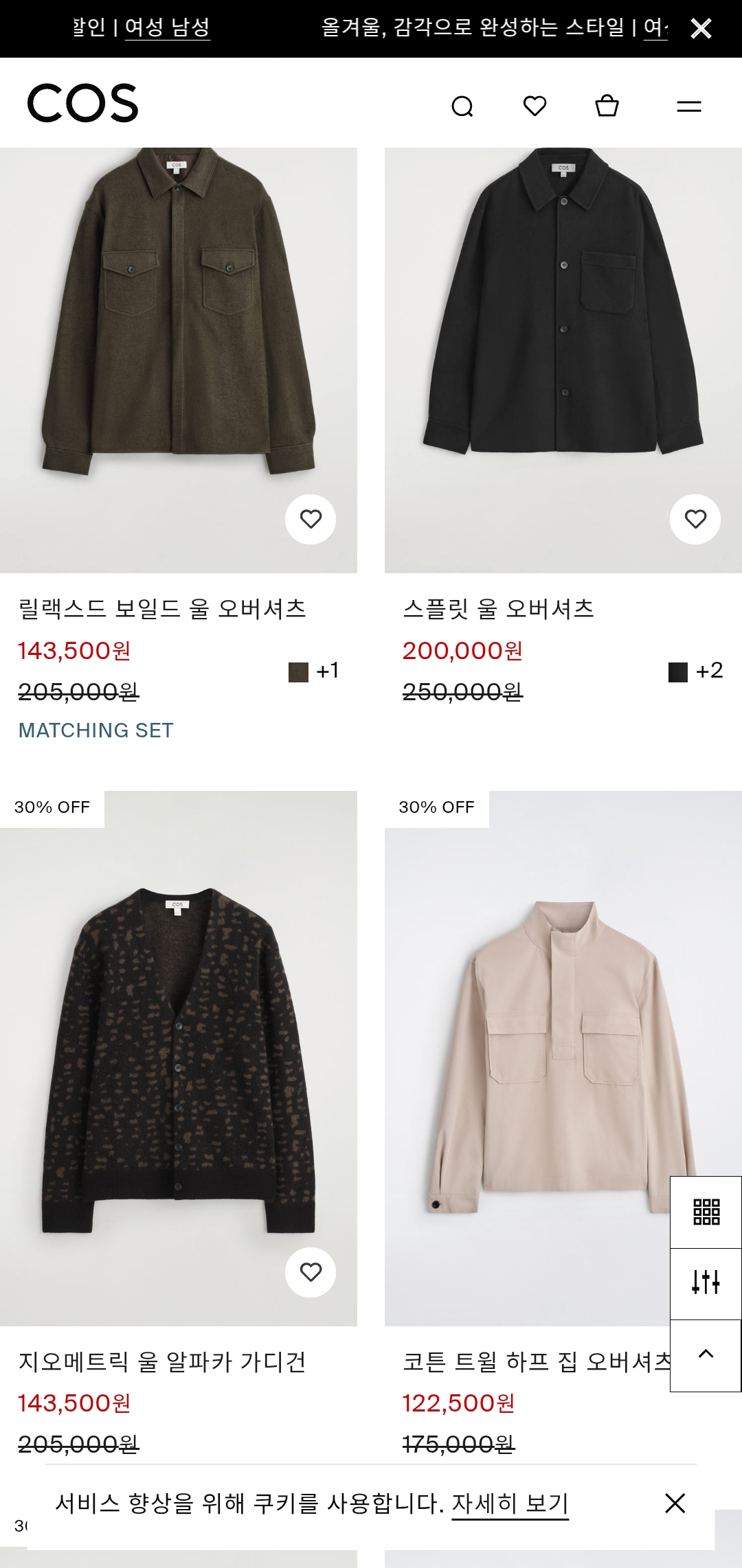 COS는 시즌별 물량이 빠르게 빠지는 편이라, 마음에 드는 아이템이 있다면 서둘러 담아두는 것이 좋습니다.