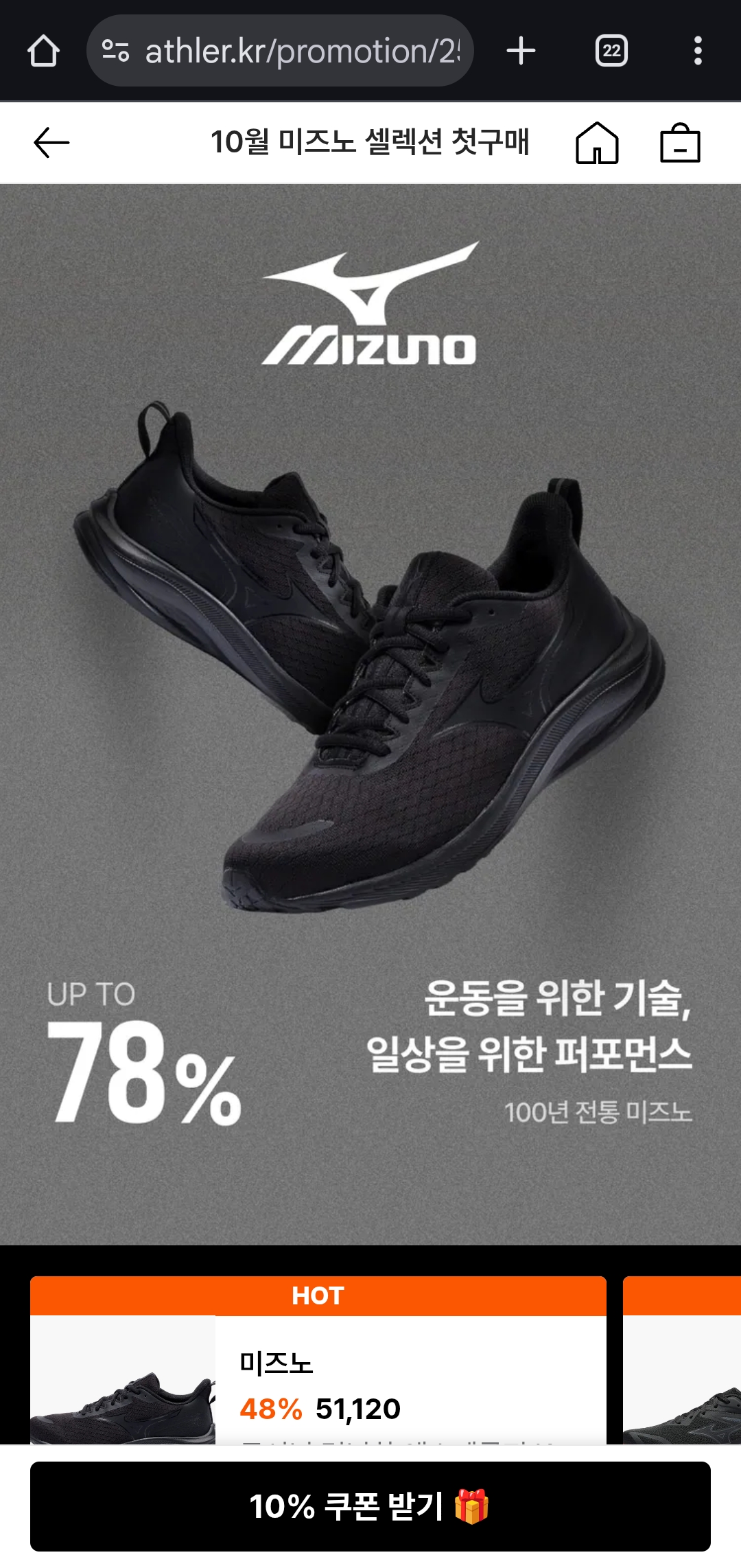 100년 전통 스포츠 브랜드 ‘미즈노’가 애슬러에서 최대 78% 할인이라는 대범한 폭으로 등장했어요.