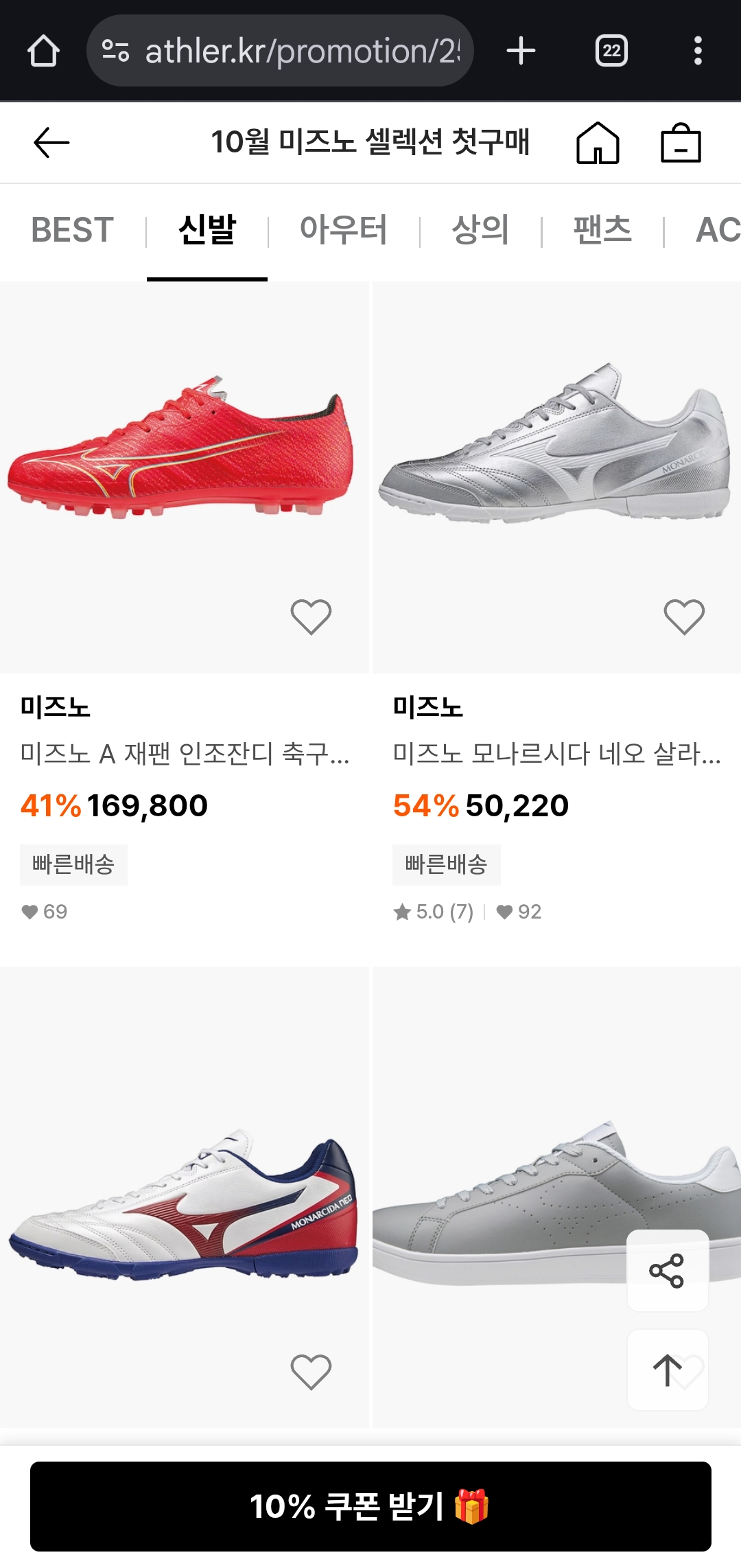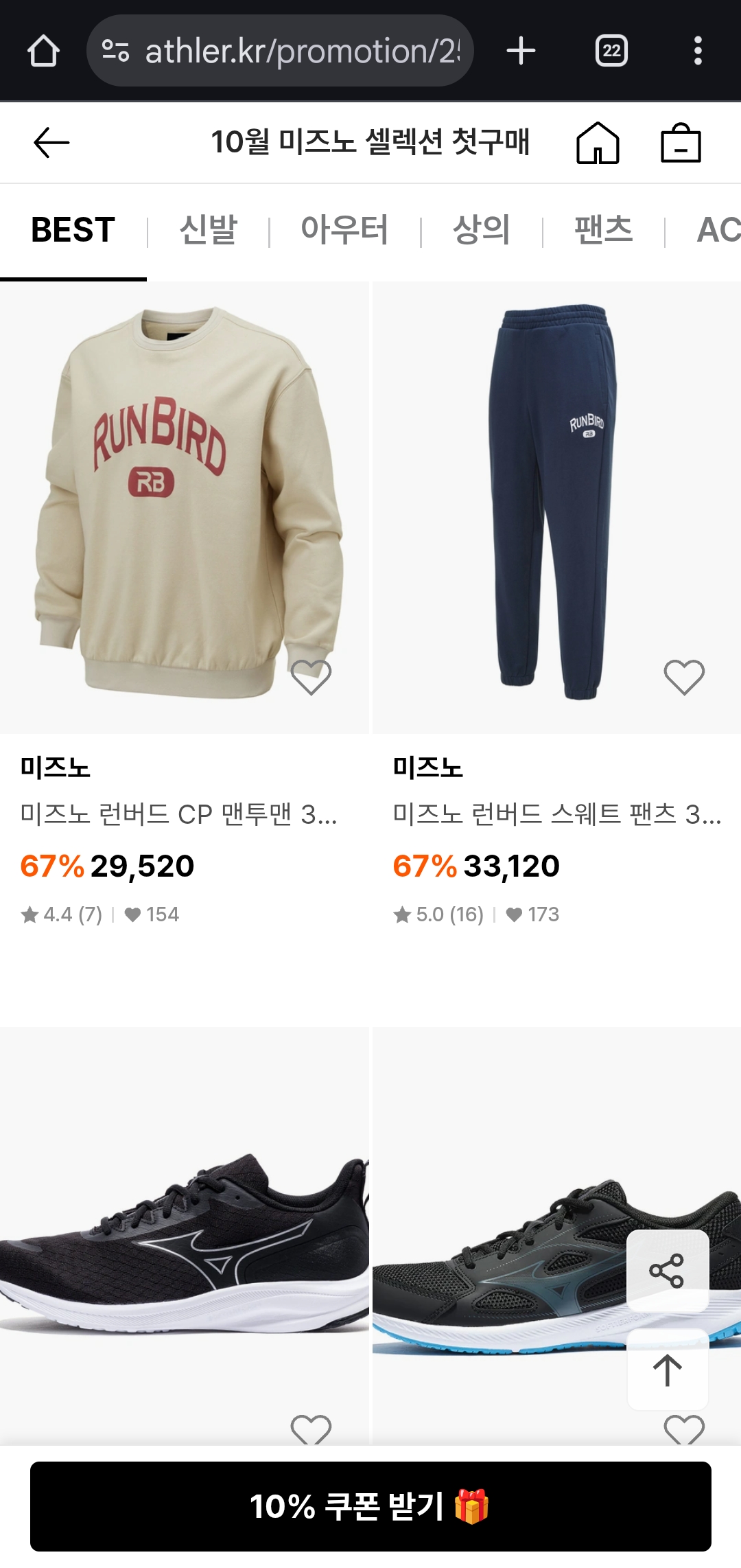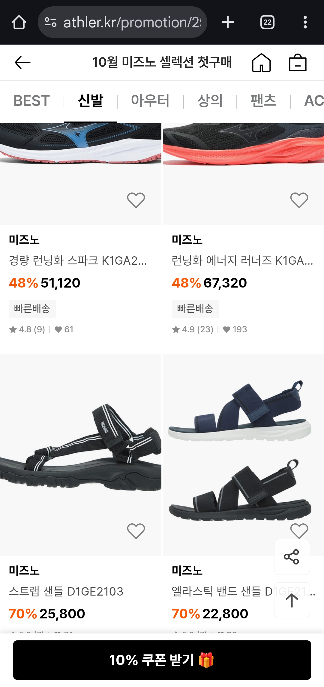 애슬러 미즈노 셀렉션은 이번 시즌 운동화·샌들·가방을 새로 들이고 싶을 때 가장 효율적인 행사예요.