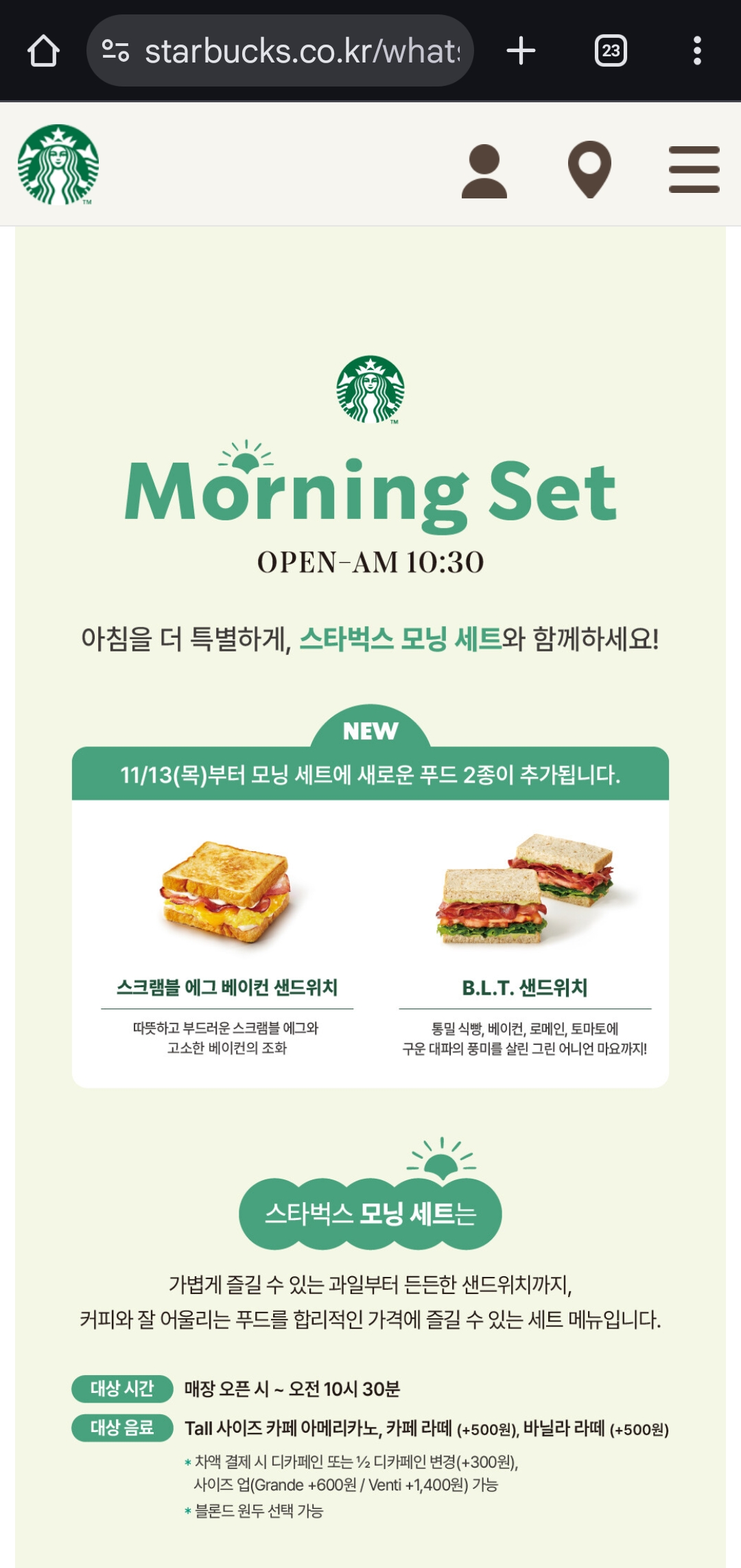 ▶ 스타벅스 모닝세트 이벤트 확인하기