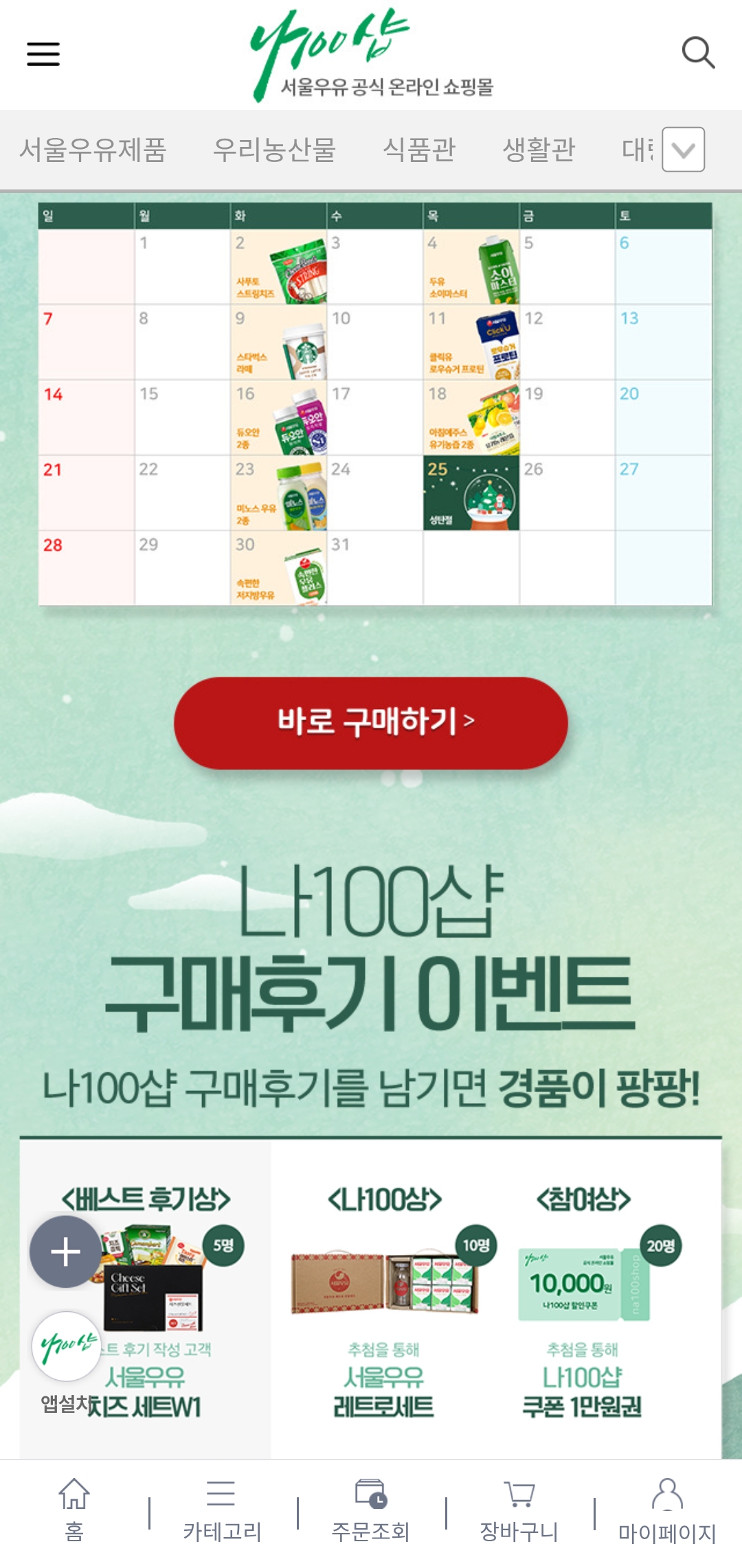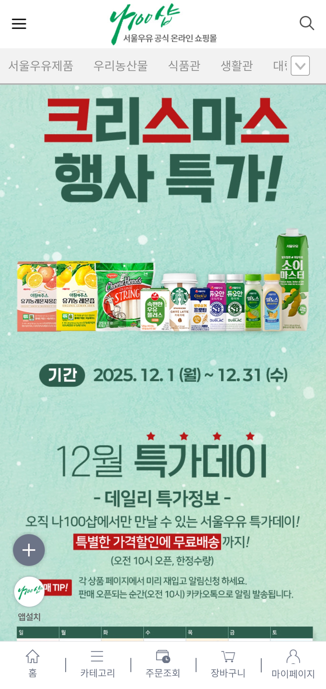 행사명: 서울우유 나100샵 크리스마스 행사특가 & 12월 특가데이