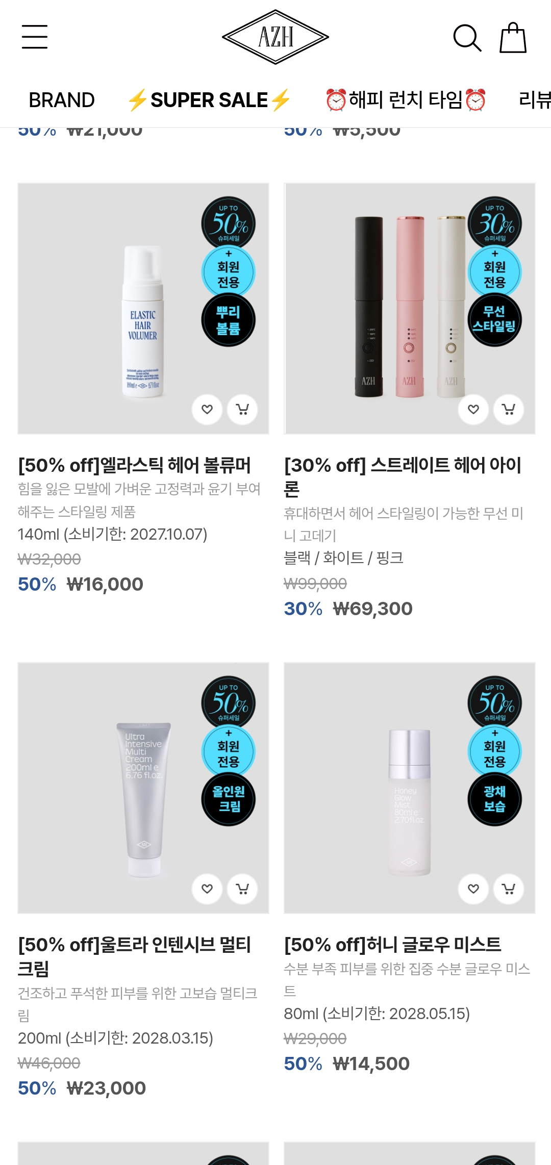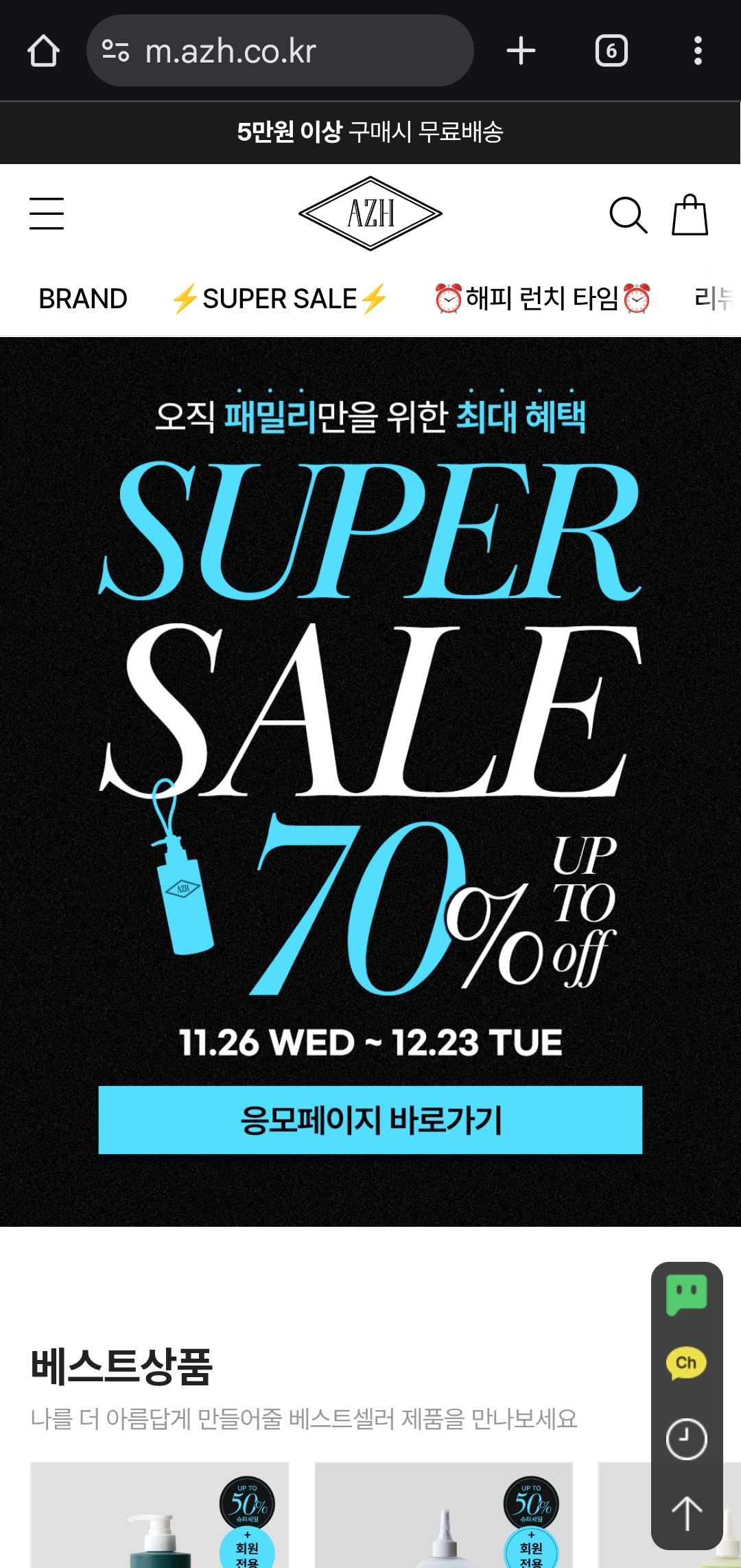 이벤트 페이지: AZH 공식몰 패밀리세일