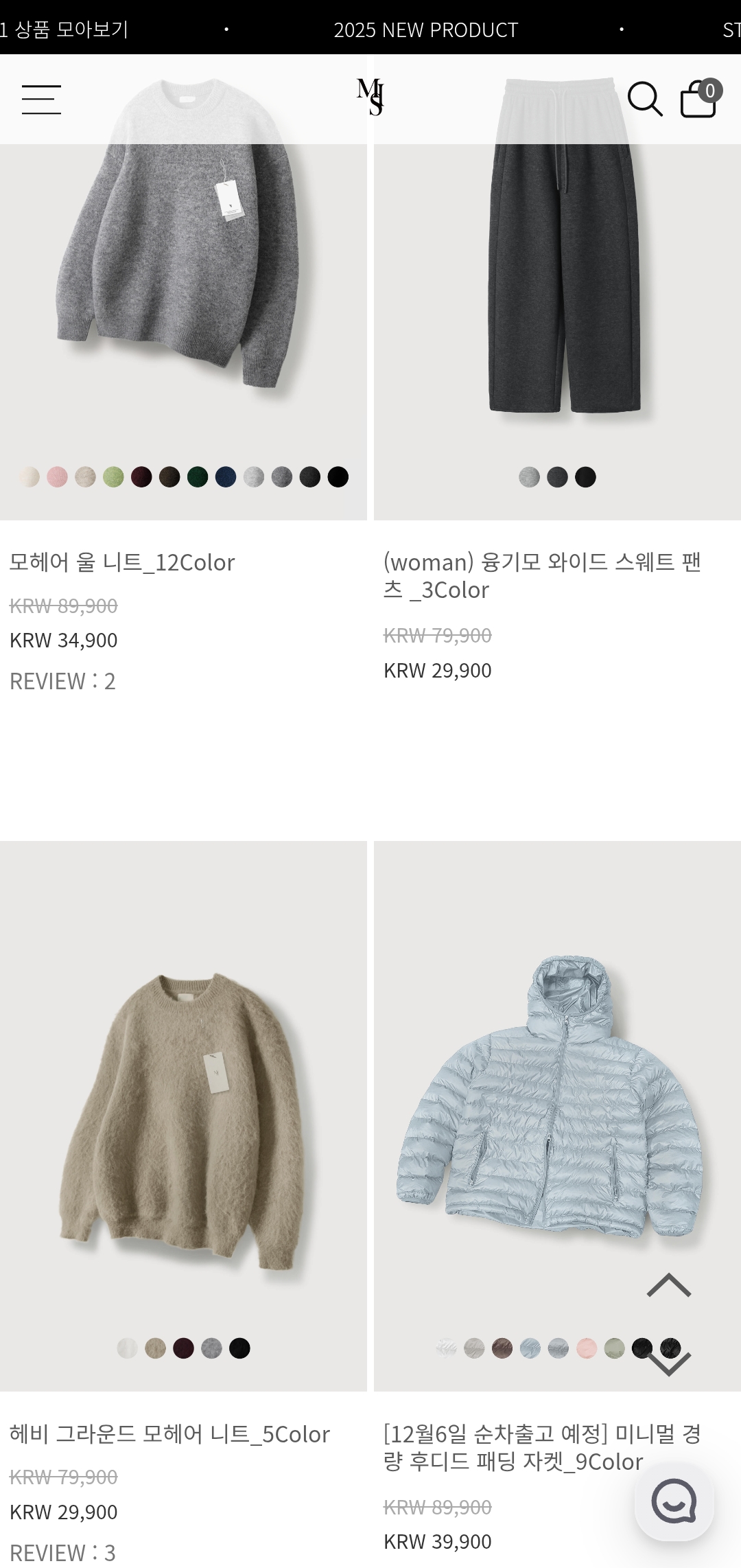 니트류는 컬러 선택 폭 넓음: 12컬러 구성 제품은 품절 빠름