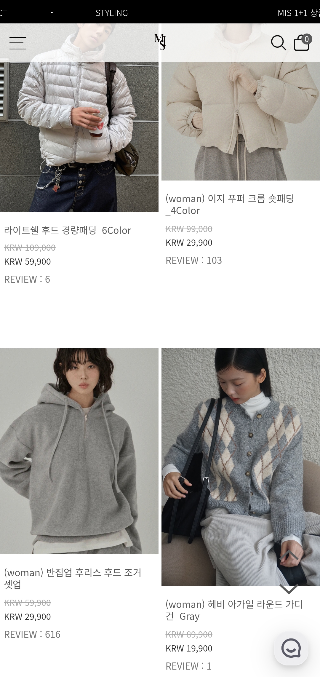 주요 상품군: 패딩, 니트, 바지, 후드, 겨울 외투 등