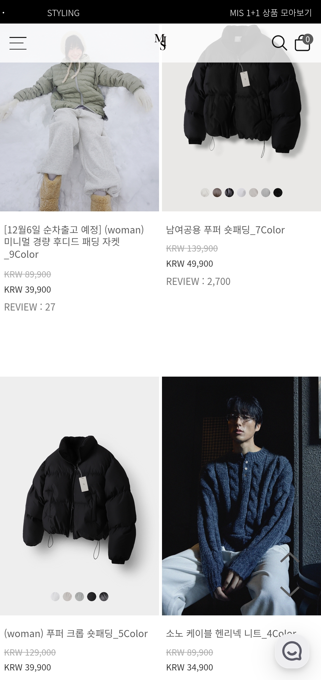 남녀공용 푸퍼 숏패딩 (리뷰 2,700+ 핵인기)