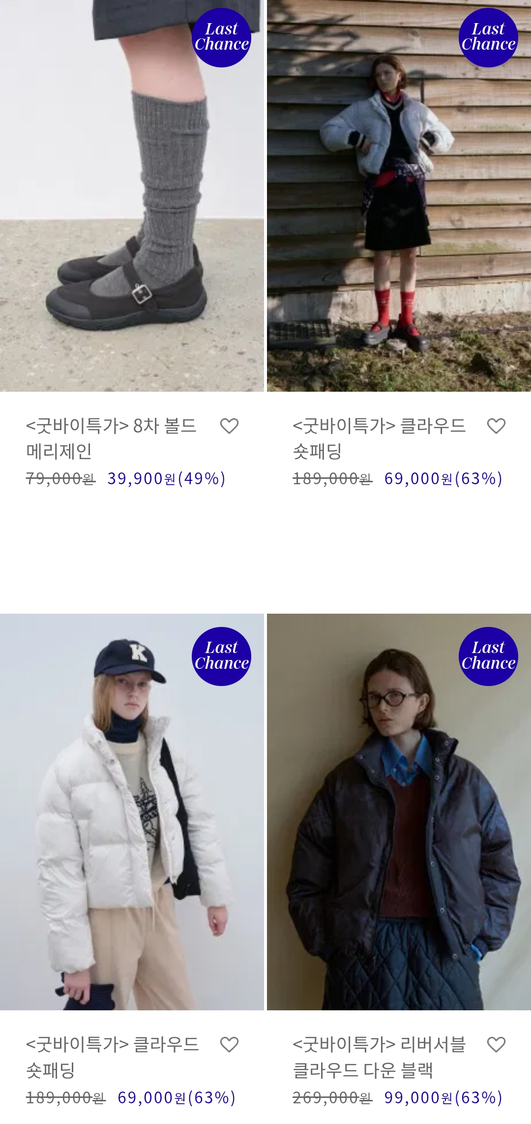 ‘라스트 찬스’ 표기 제품은 재입고 예정 없음