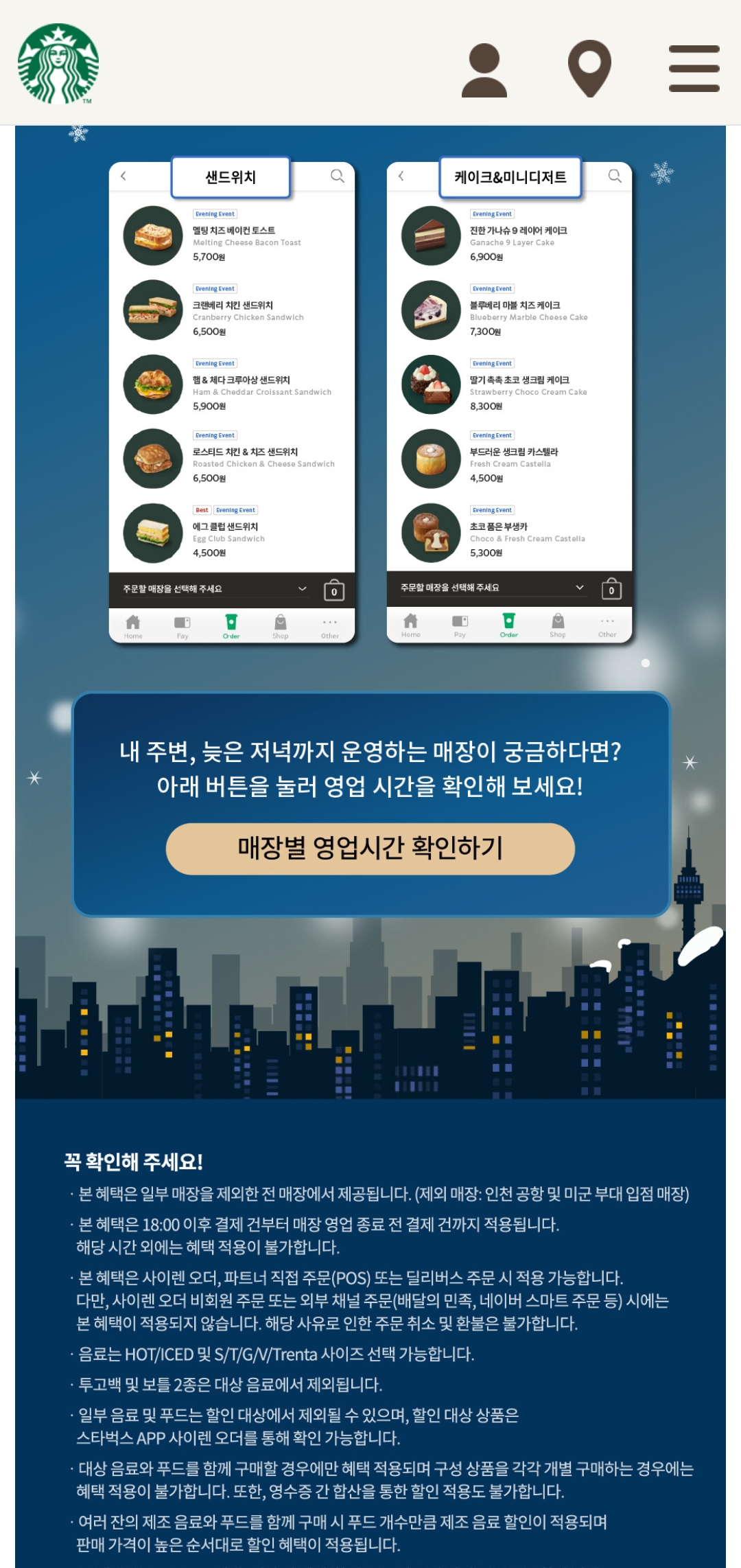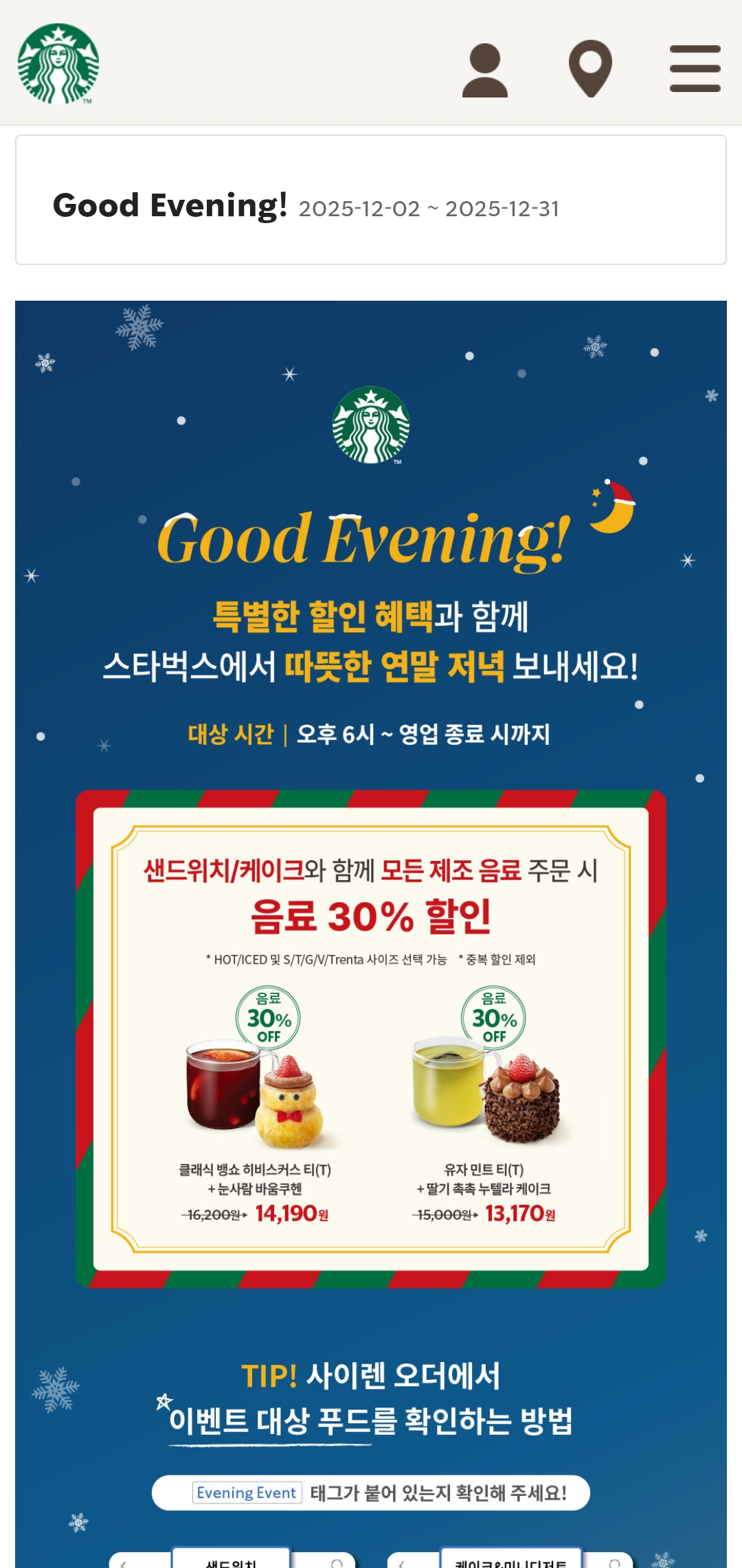 스타벅스이벤트, 스타벅스굿이브닝, 스타벅스30%할인, 스타벅스샌드위치, 스타벅스케이크, 스타벅스저녁할인, 스타벅스사이렌오더이벤트, 스타벅스푸드할인, 스타벅스연말이벤트, 스타벅스음료할인, StarbucksEvent, 스타벅스프로모션, 스타벅스저녁추천