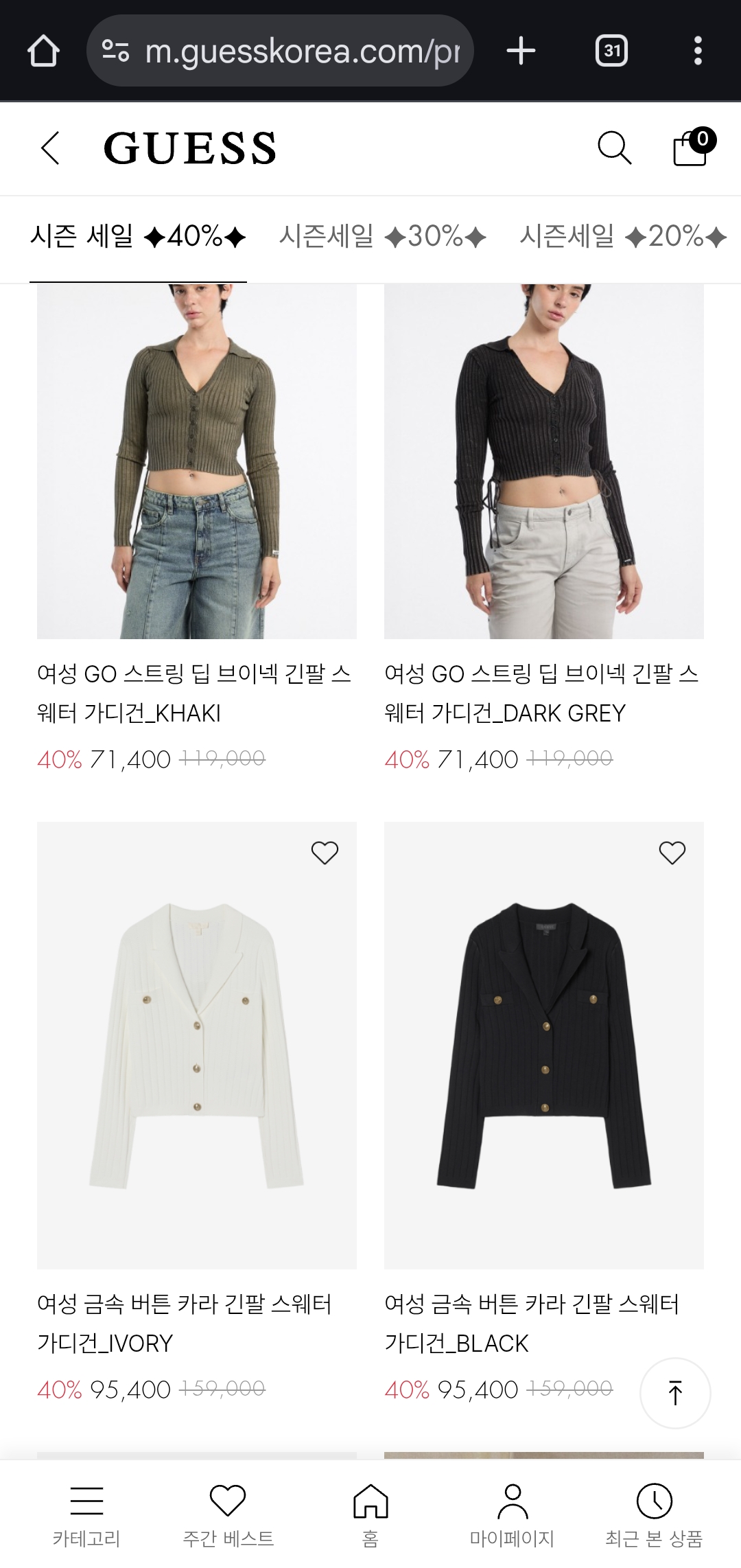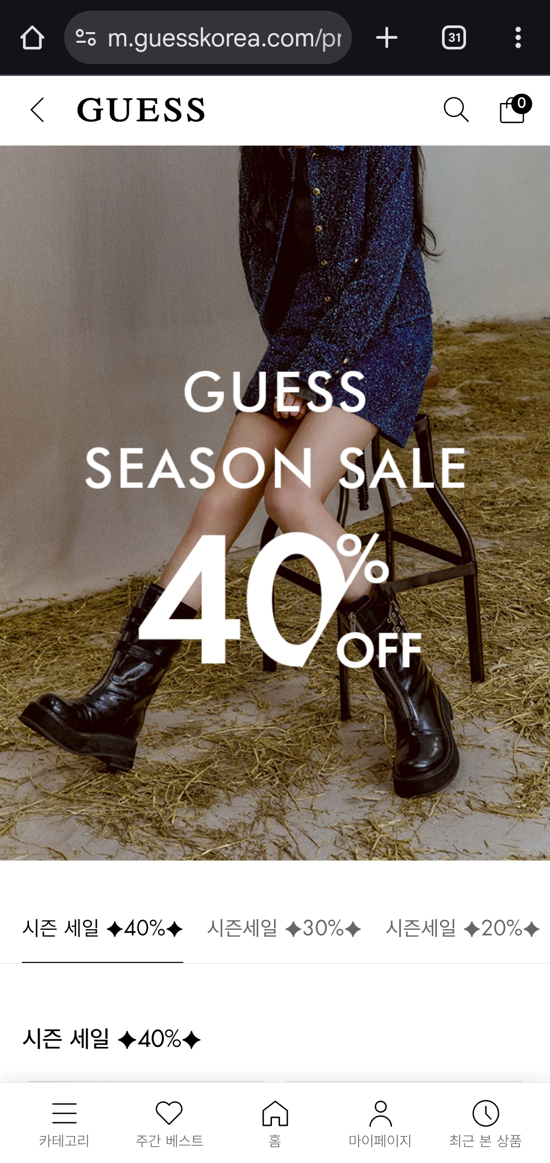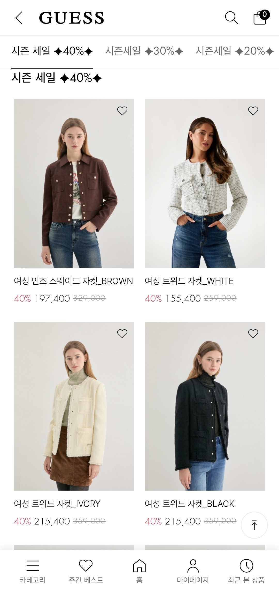 40% 할인은 FW 시즌오프 중에서도 꽤 큰 폭이에요. 특히 트위드·스웨이드·데님 아우터는 지금 아니면 같은 가격이 다시 나오기 어렵습니다. 겨울 스타일을 새로 꾸미고 싶다면 지금 바로 둘러보세요!