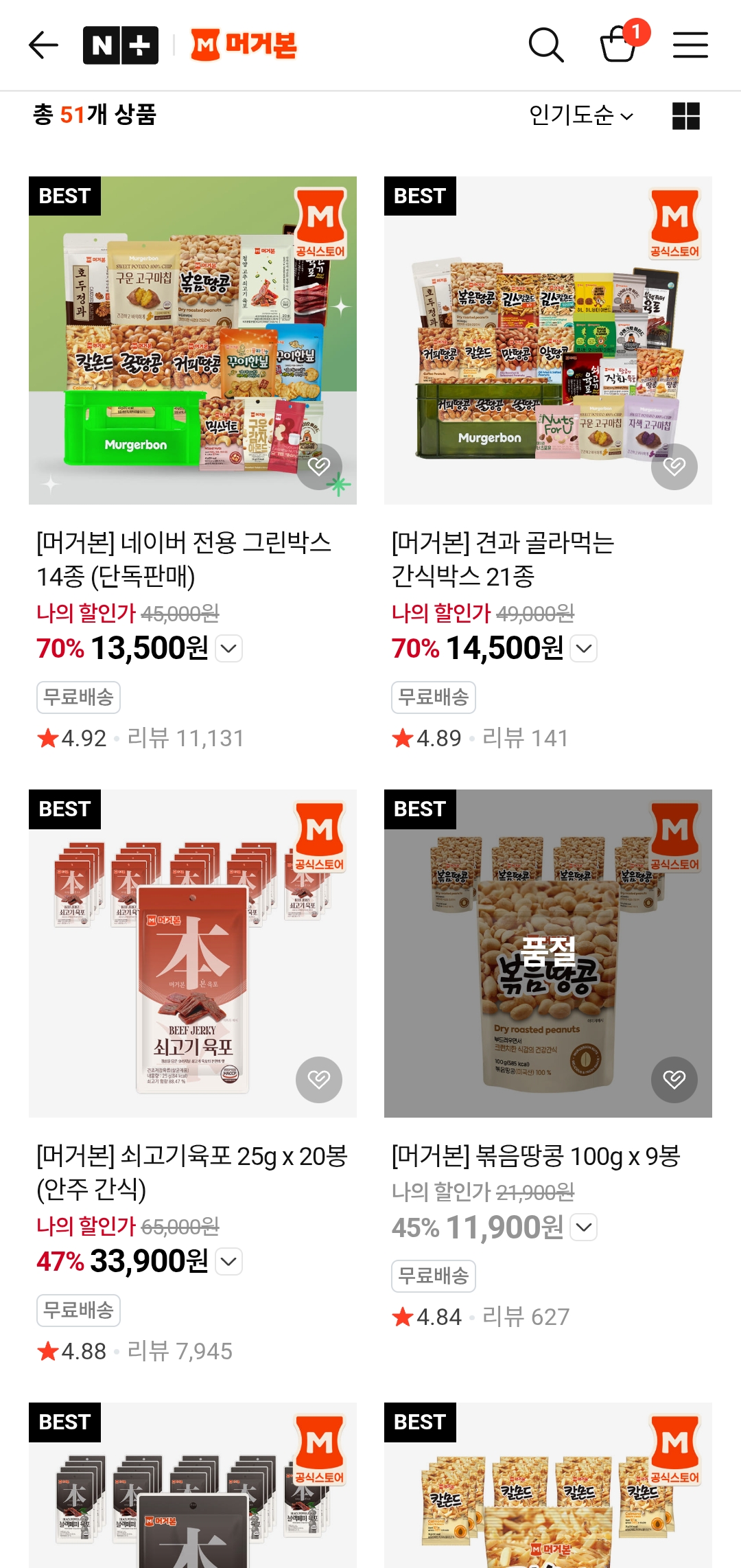 베스트 상품: 견과박스, 육포 시리즈, 데일리너츠포유, 볶음땅콩 외