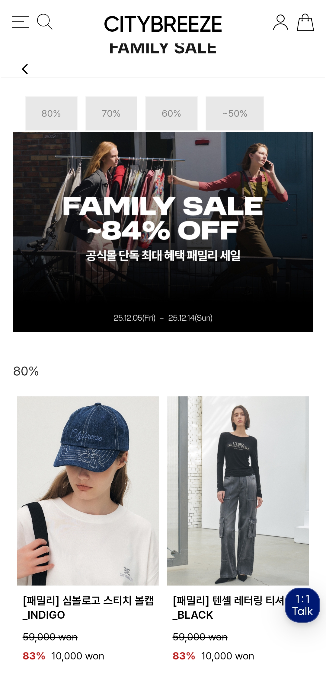 **시티브리즈(CITYBREEZE)**에서 12/5(금)~12/14(일) 단 10일간, 공식몰 단독 최대 84% 할인 패밀리세일을 진행하고 있어요.