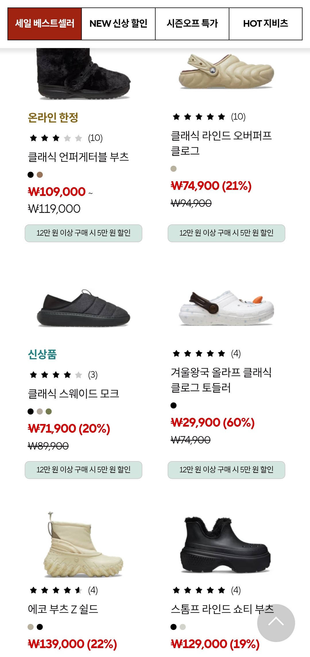 12만 원 채워서 5만 원 할인 놓치지 말고, 지금 바로 크록스마스 혜택 받으러 가세요.