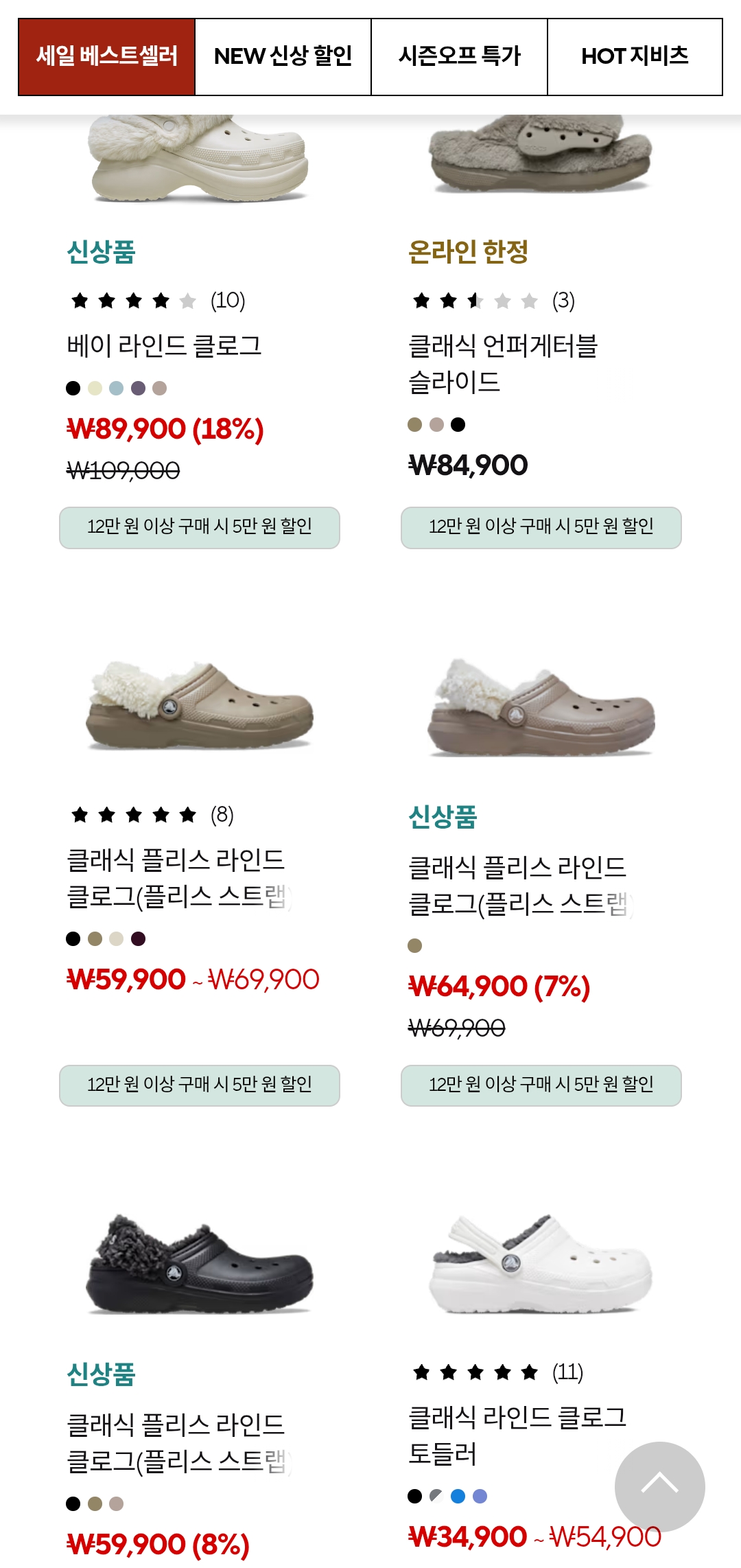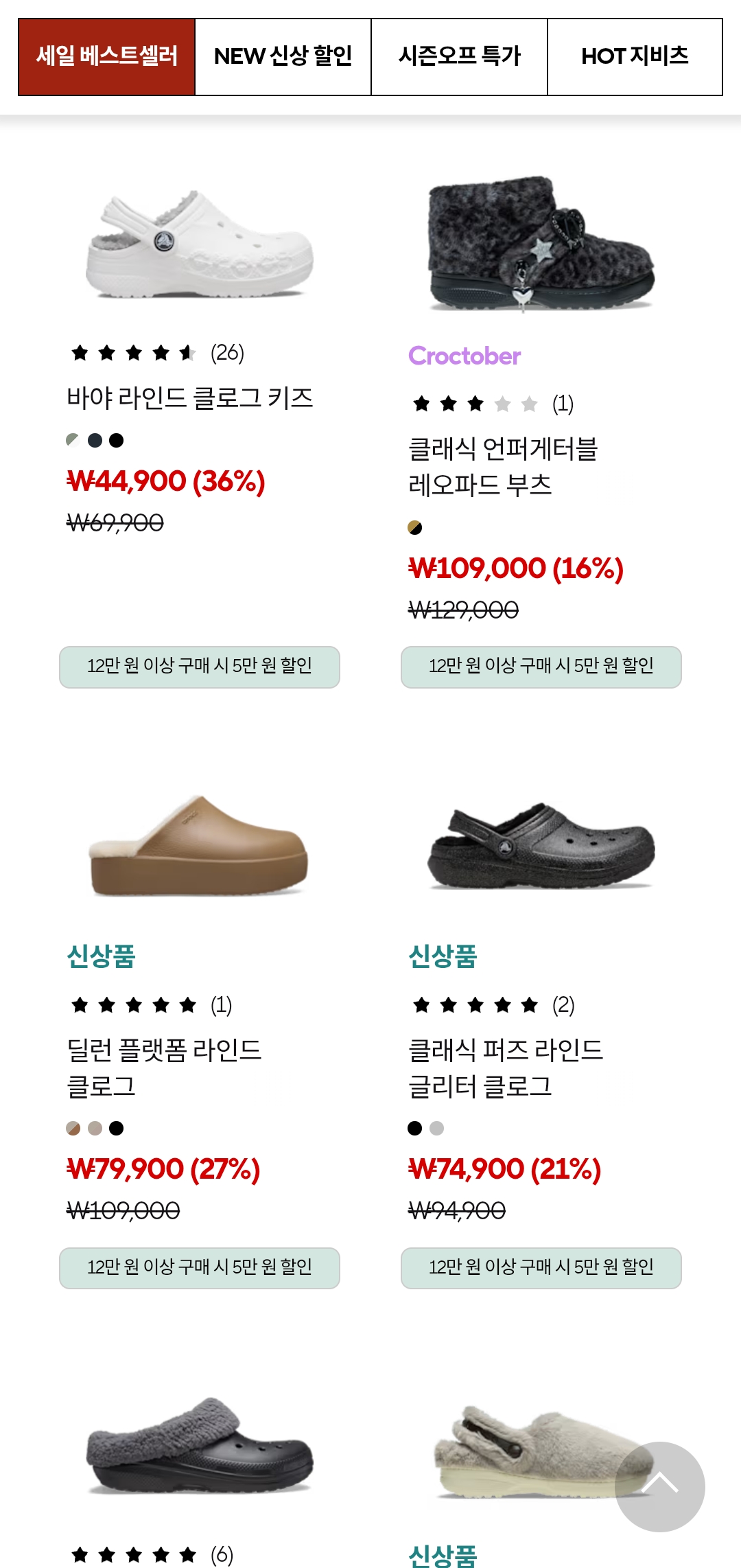 신상 퍼즈·플리스 라인드 제품부터 클래식 클로그까지, 구매 금액에 따라 최대 5만원 즉시 할인을 받을 수 있는 절호의 기회예요. 겨울용 크록스 찾고 있다면 이번 세일을 절대 놓치지 마세요.