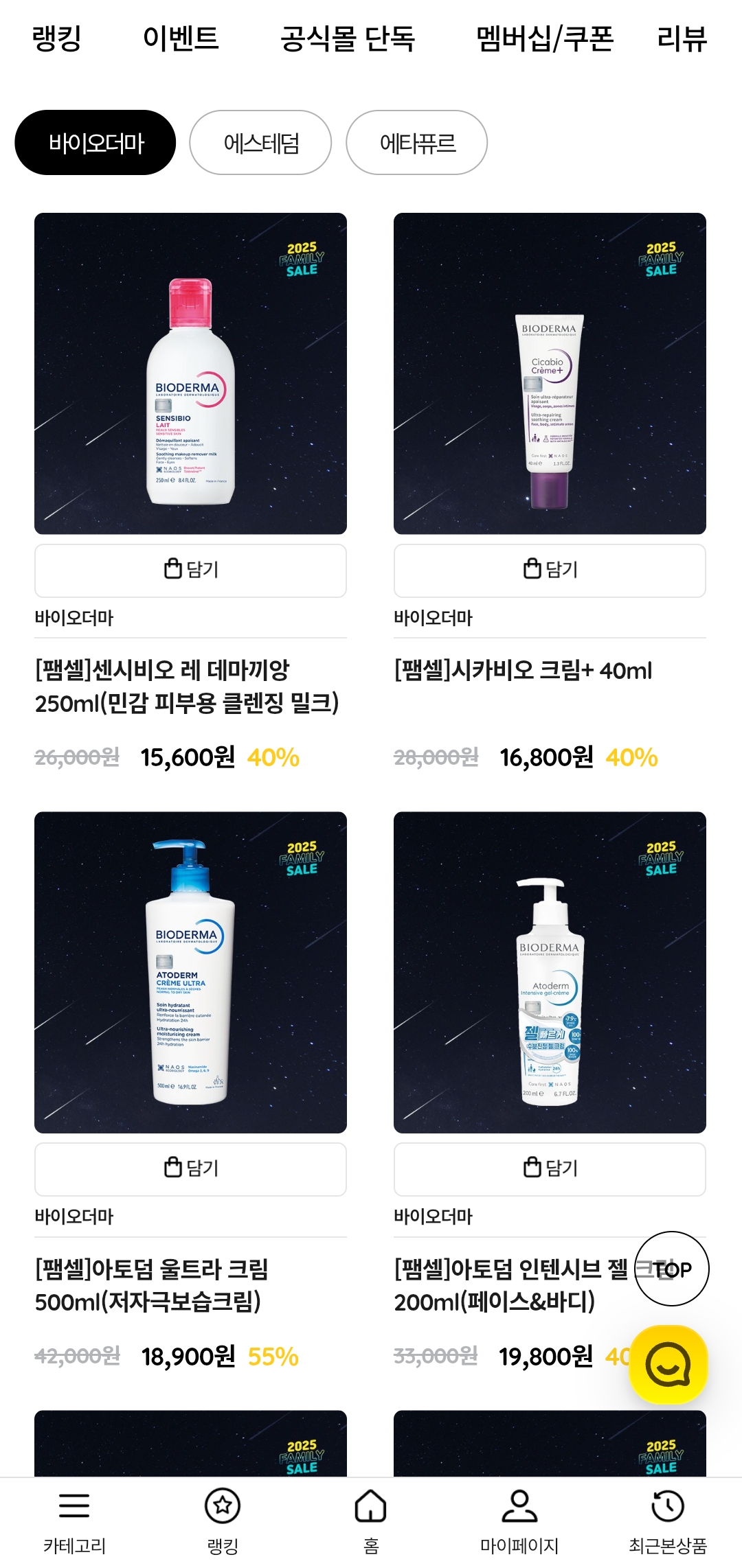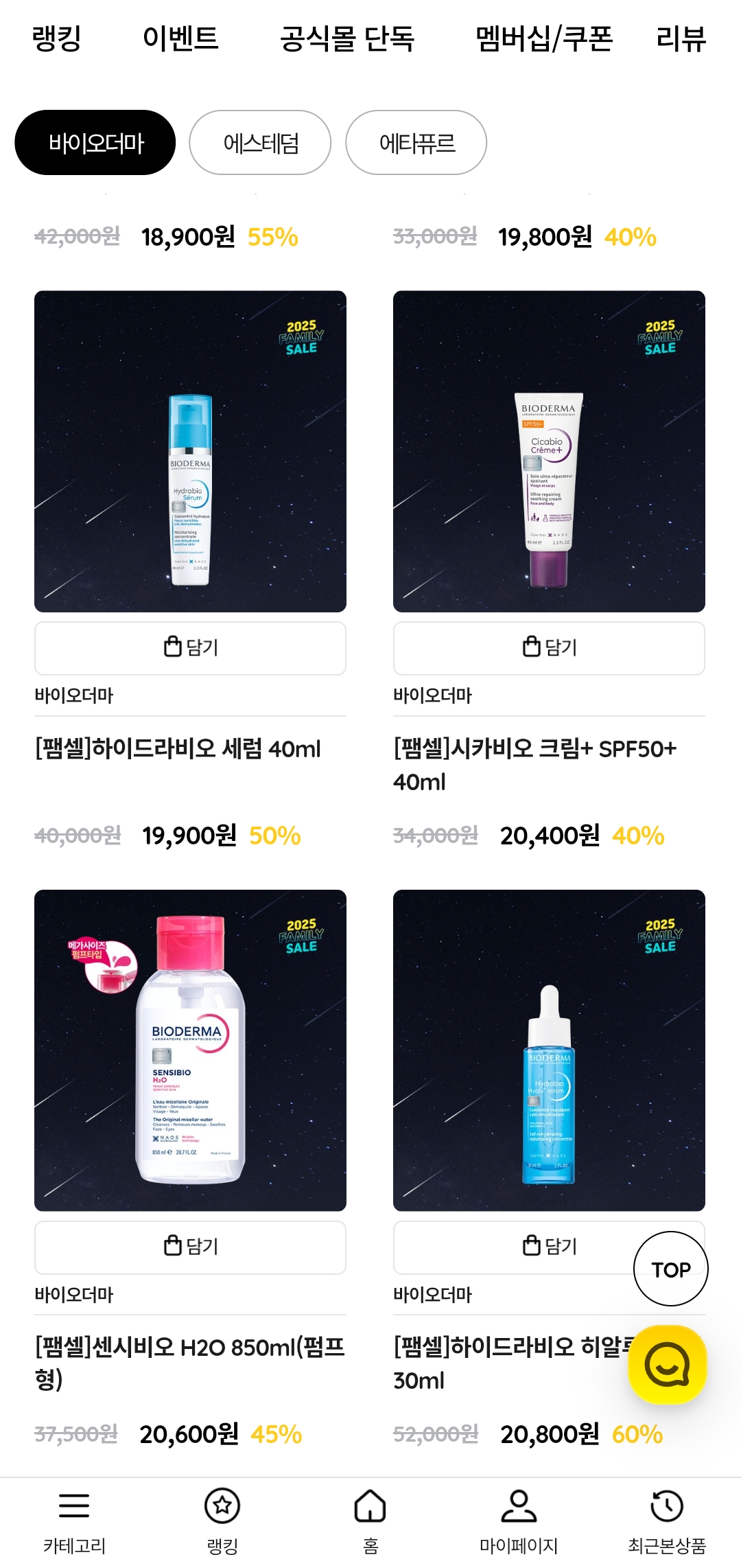 바이오더마, 에스테덤, 에타퓨르 같은 인기 스킨케어 브랜드를