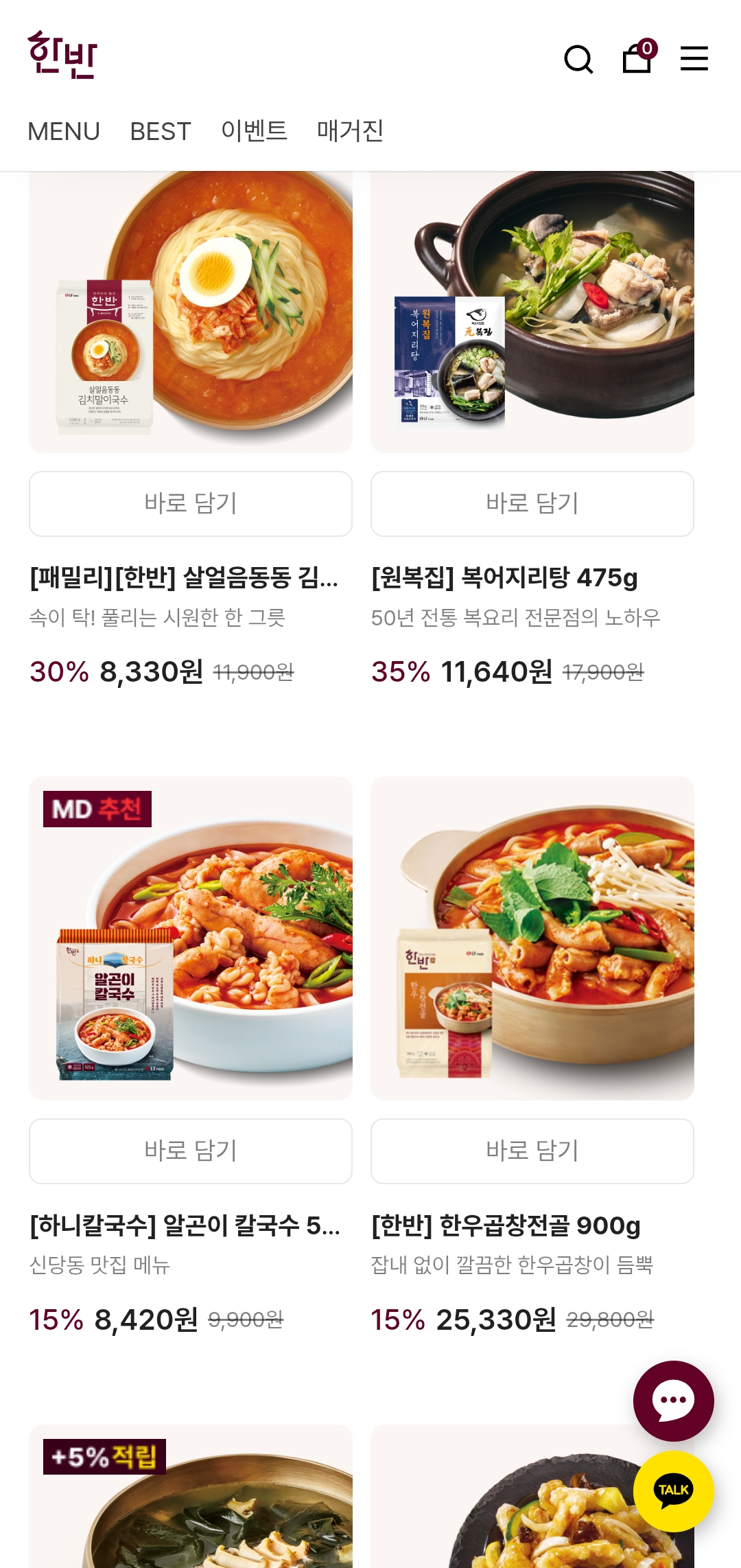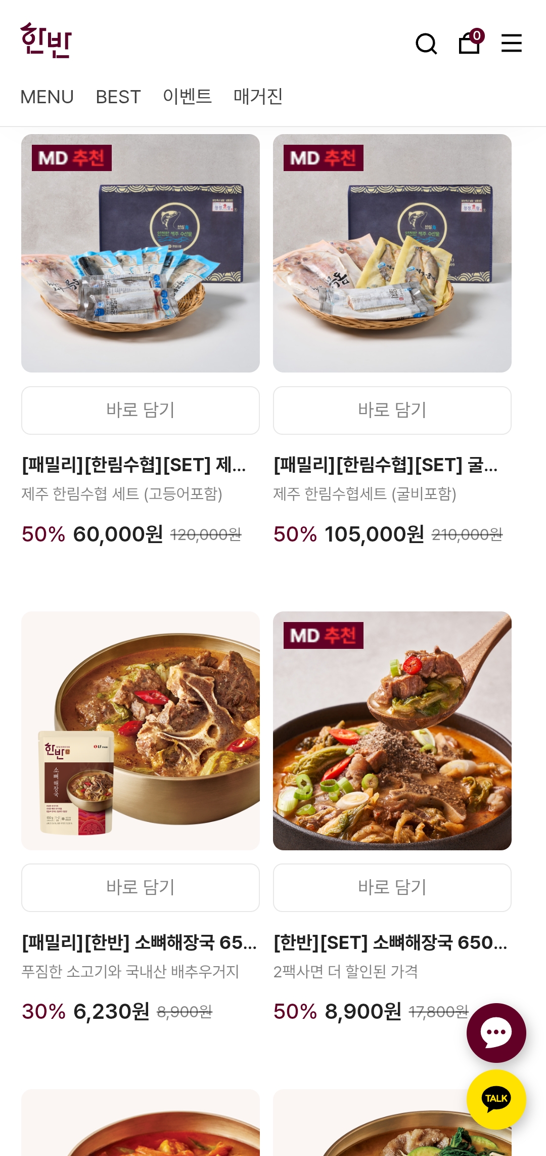 ‘한반’ 카테고리 상품 3만원 이상 구매 시 소뼈해장국 증정