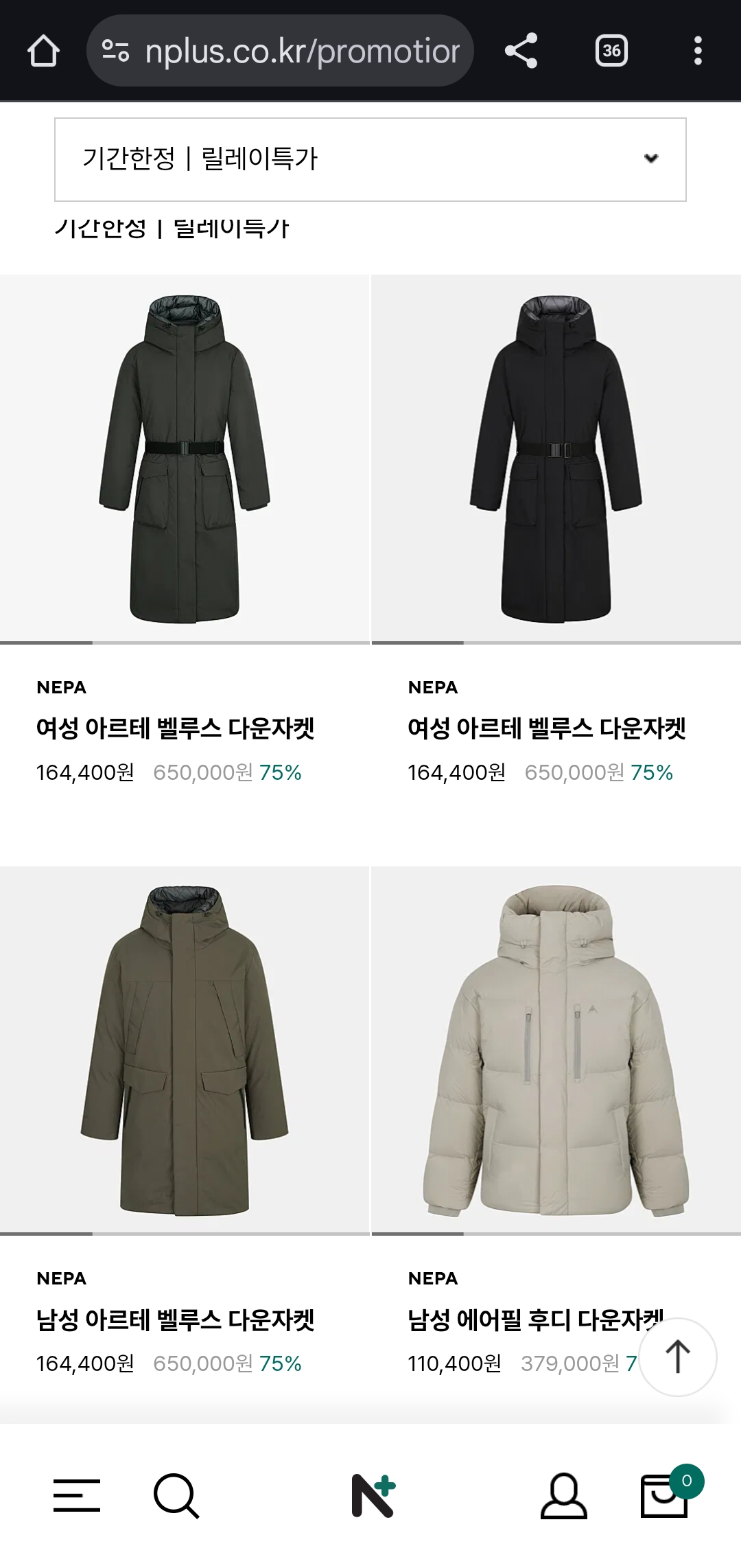 특히 아르테 벨루스 다운자켓 75% 할인은 거의 보기 힘든 할인이라서 놓치기 아까워요!
