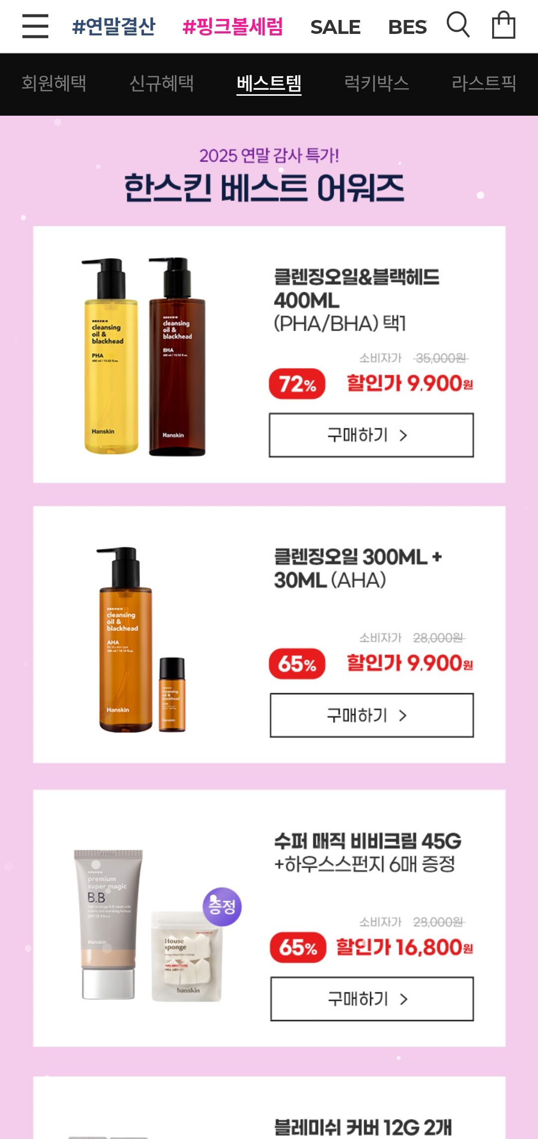 한스킨 연말결산 세일 정보