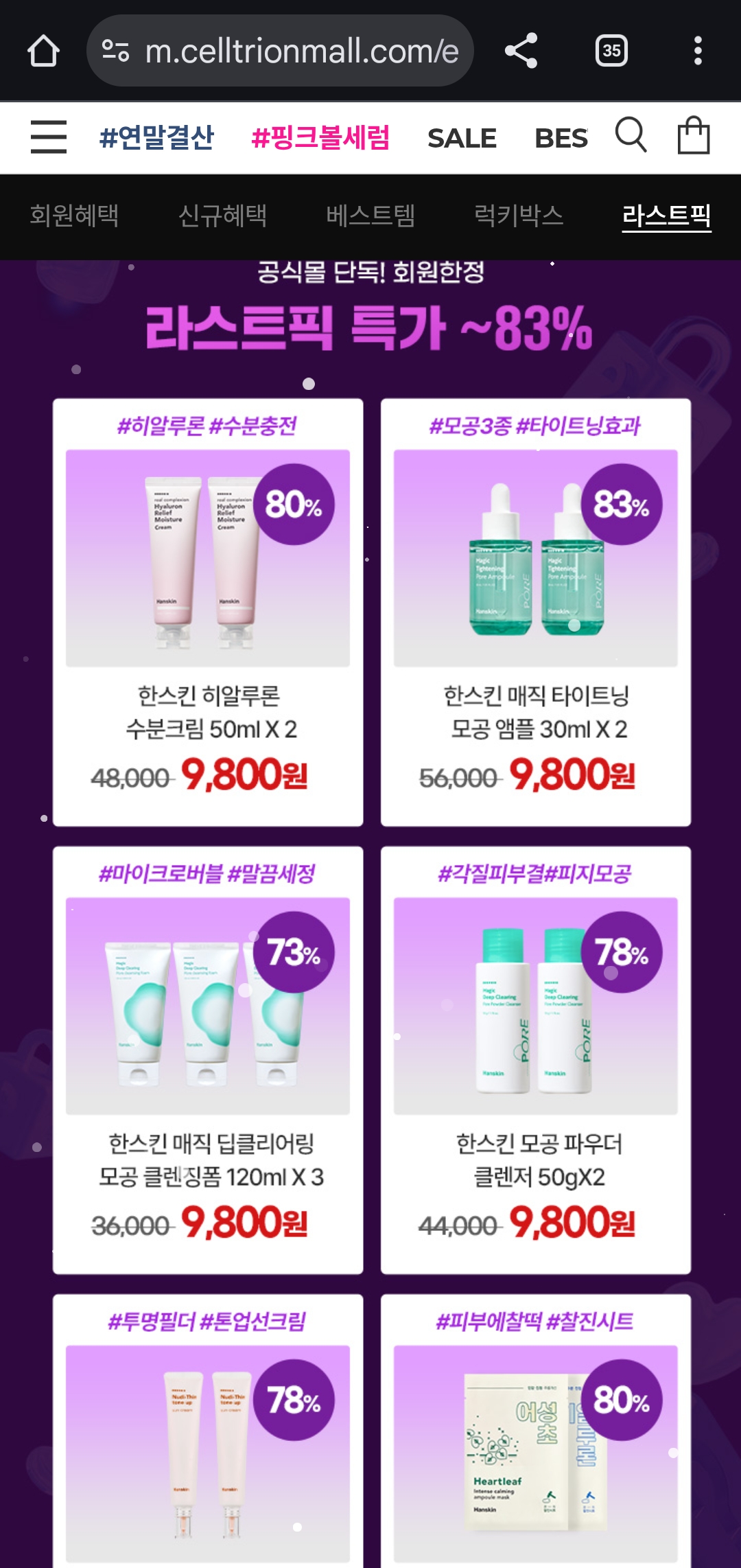 **연말결산 특가세일 ‘한스킨 위크’**를 진행하고 있어요.