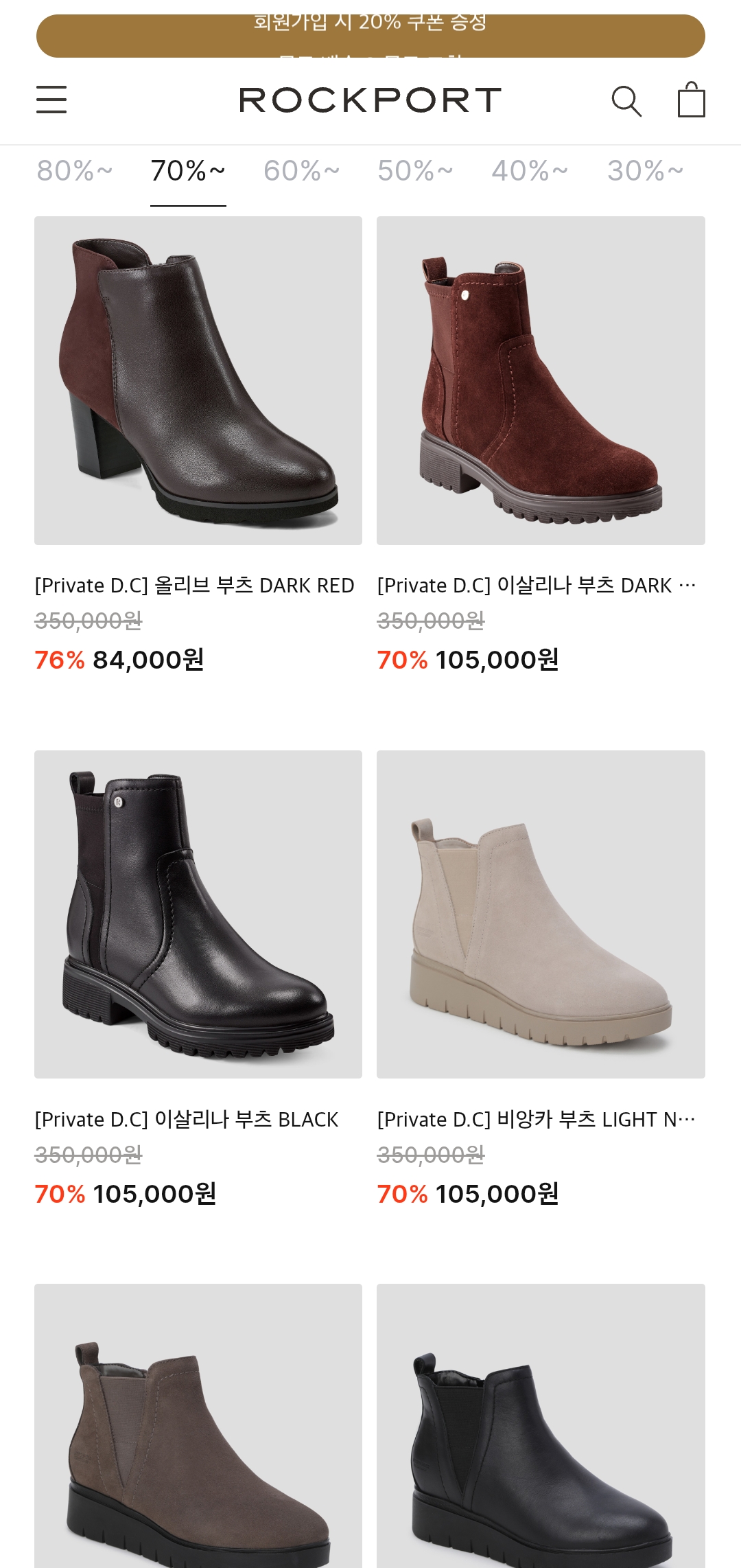 락포트 공식 온라인몰 패밀리세일 페이지