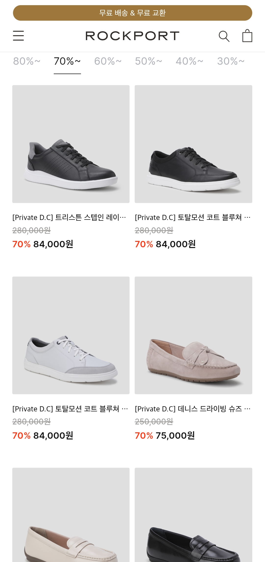 편안함과 클래식한 디자인으로 사랑받는 **락포트(ROCKPORT)**에서