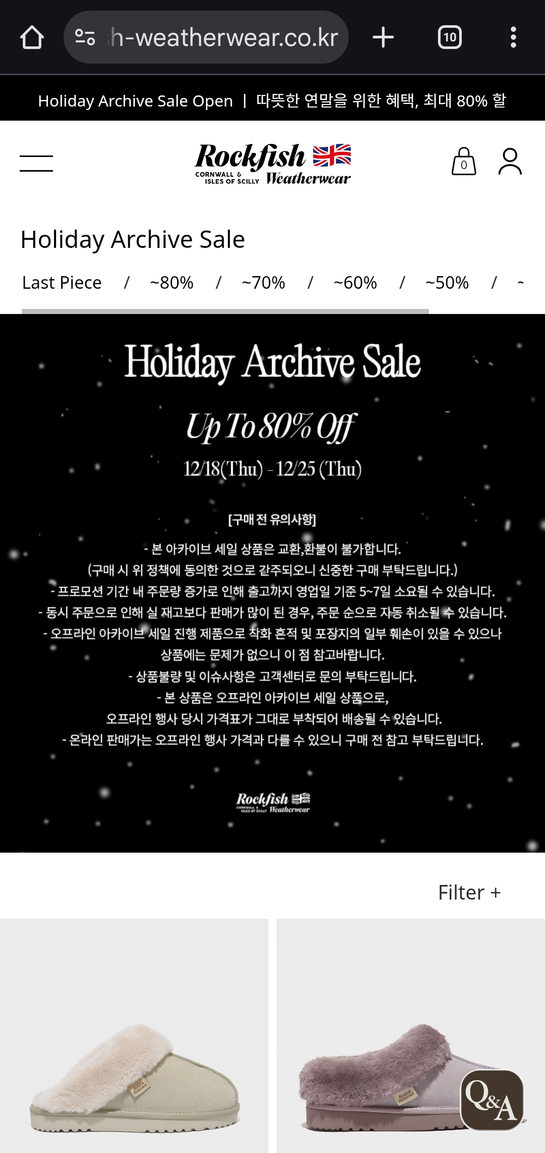 지금 **락피쉬 웨더웨어(Rockfish Weatherwear) 공식몰에서 ‘Holiday Archive Sale’**을 진행하고 있어요.
