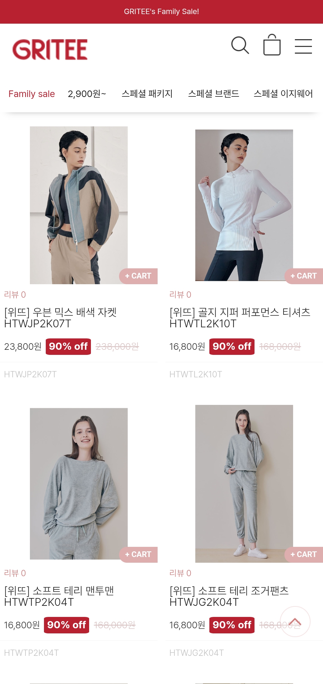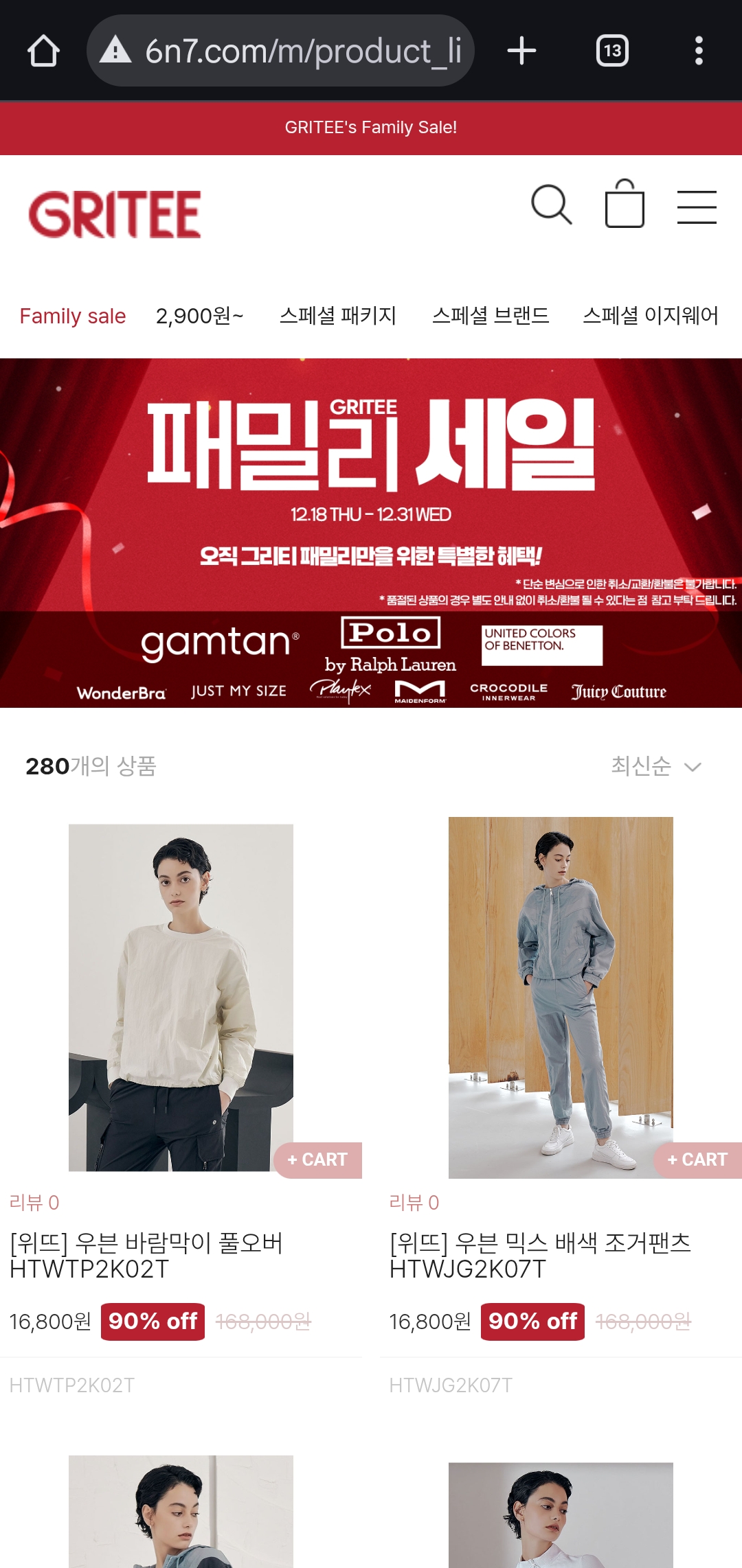 지금 그리티(GRITEE) 공식 패밀리세일 페이지에서 연말 패밀리세일을 진행 중이에요.