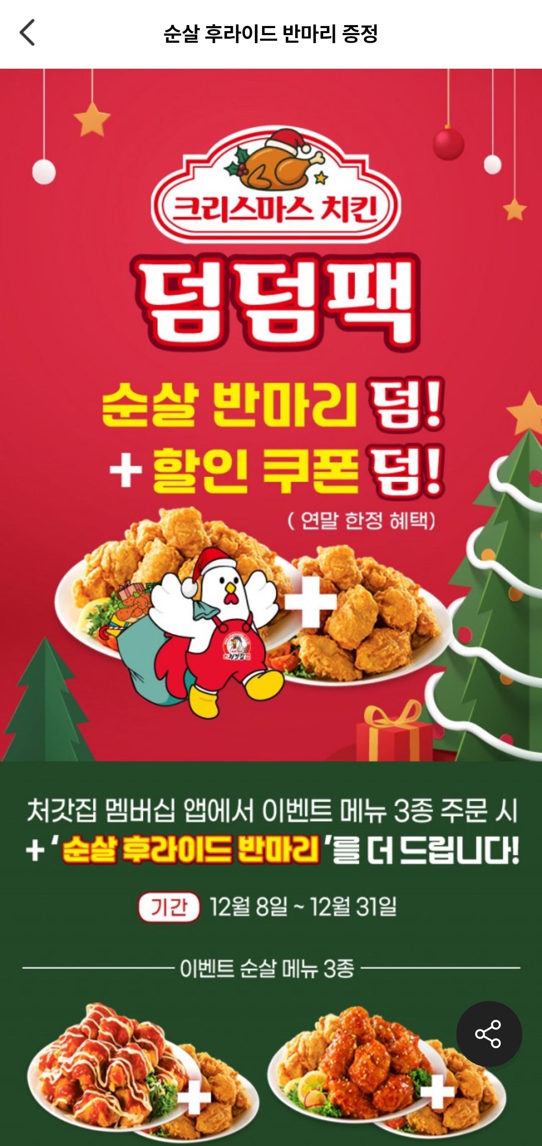 연말에 가족·친구들과 치킨 먹기 딱 좋은 혜택이에요.
