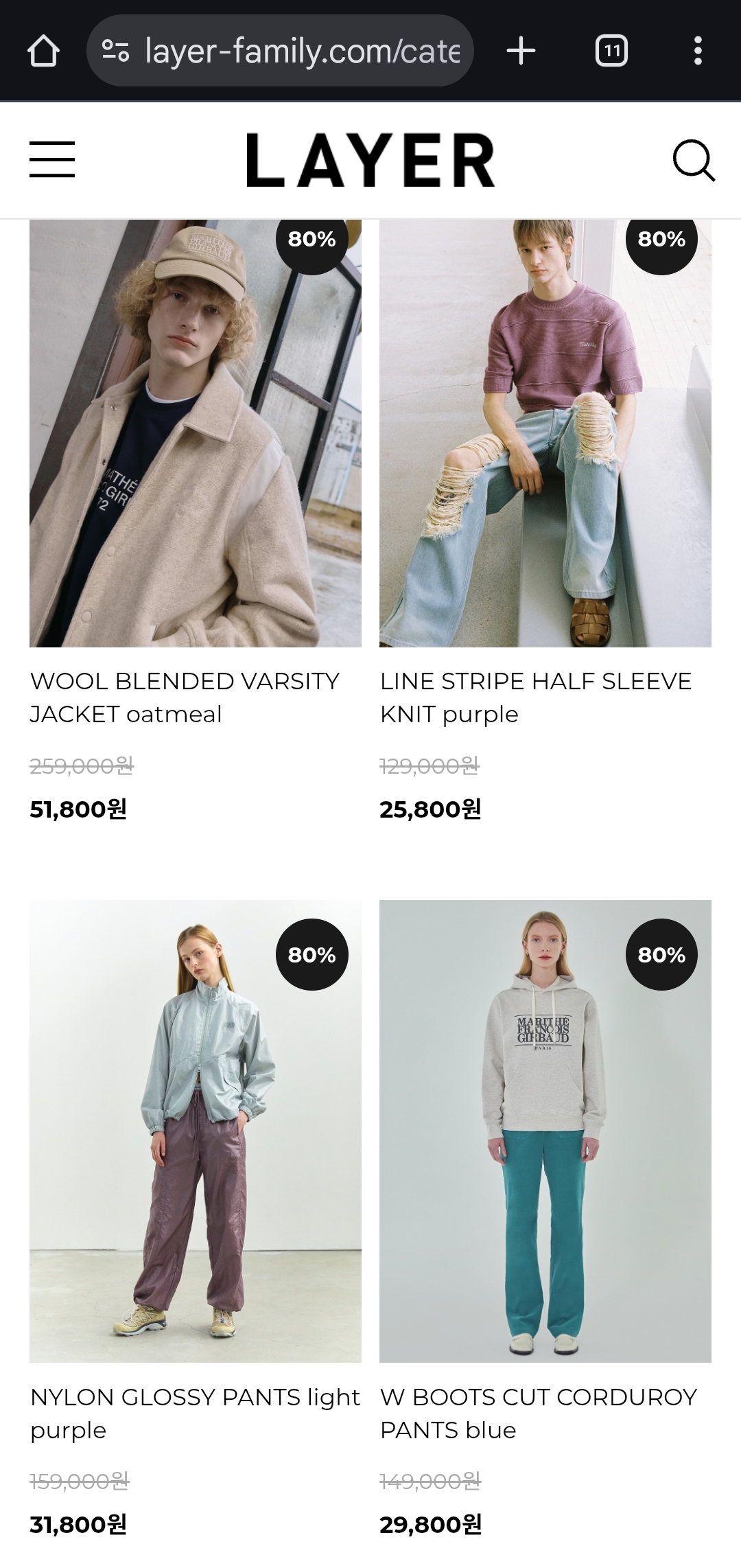 지금 레이어(LAYER)에서 브랜드 최대 80% 할인하는 패밀리세일을 진행하고 있어요.