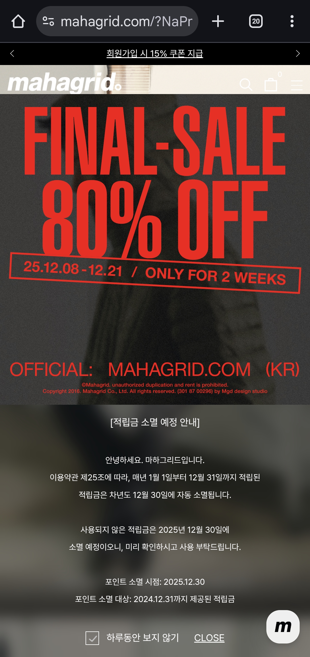 연말 **파이널 세일(FINAL SALE)**을 진행 중이에요.