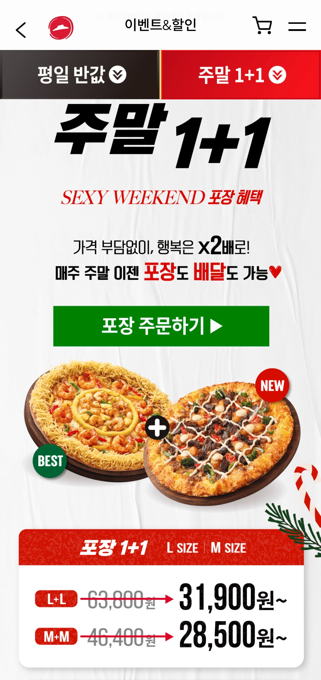 주말: 포장 & 배달 1+1 이벤트