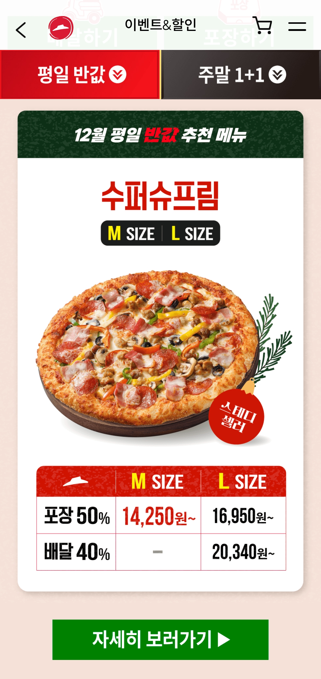 반값다 피자헛으로 정해보세요.