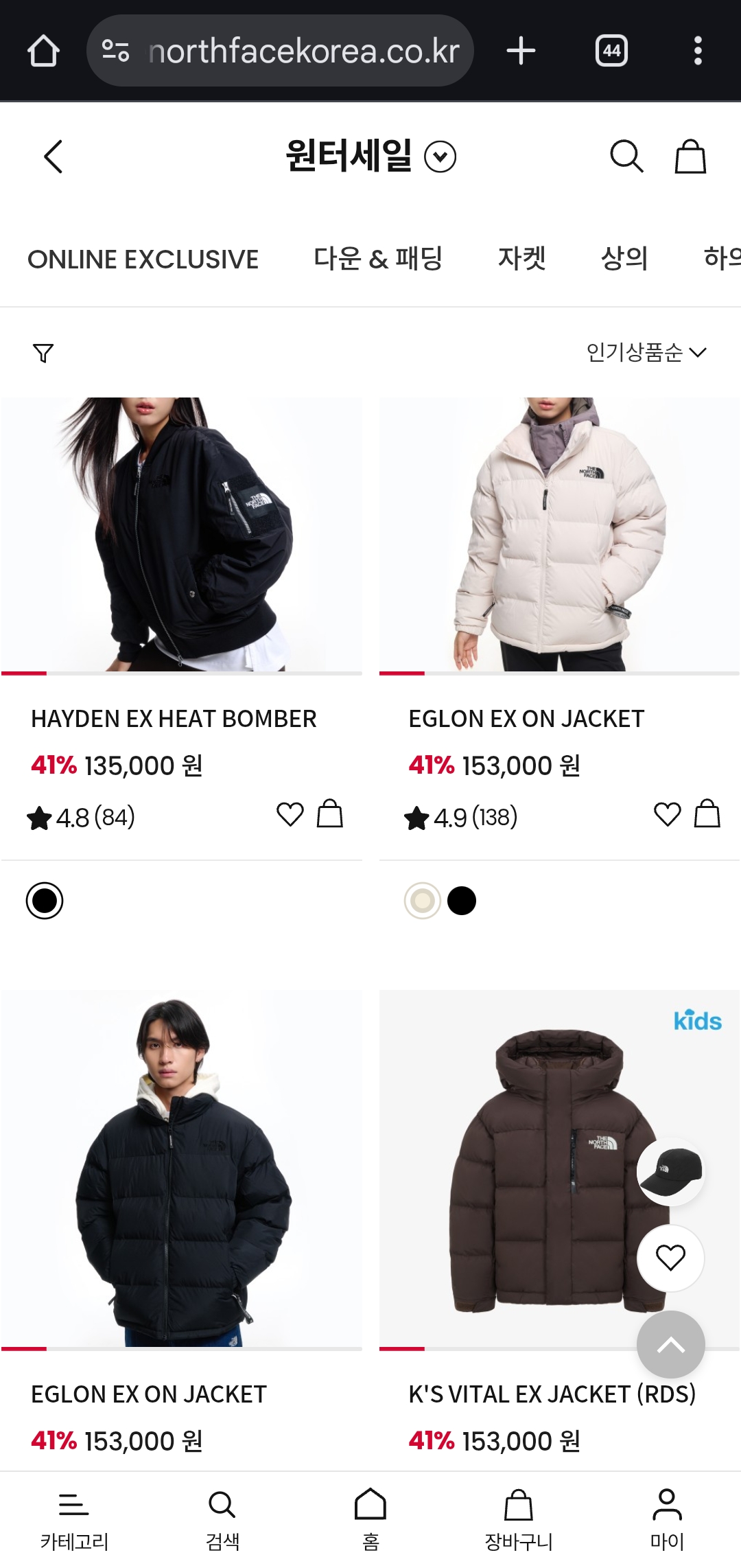 노스페이스 공식몰에서 WINTER CLEARANCE SALE을 진행하고 있어요.